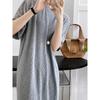 Плиссированное летнее женское платье-футболка с винтовой резьбой, повседневное, выше колена, однотонное, офисное, удобное миди-платье для леди