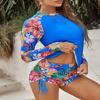 Женский консервативный купальник, комплект из 2 частей, купальник для пляжа, комплект бикини с длинными рукавами в стиле пэчворк
