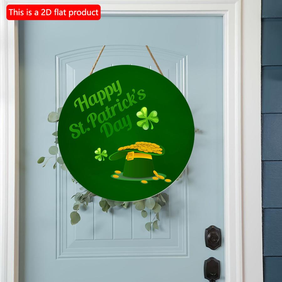 2D плоский 20*20см1шт С Днем Святого Патрика Трехлистный клевер и узоры в виде шляпы зеленая тема круглая дверь Подвеска, День Святого Патрика подвесная деревянная Подходит