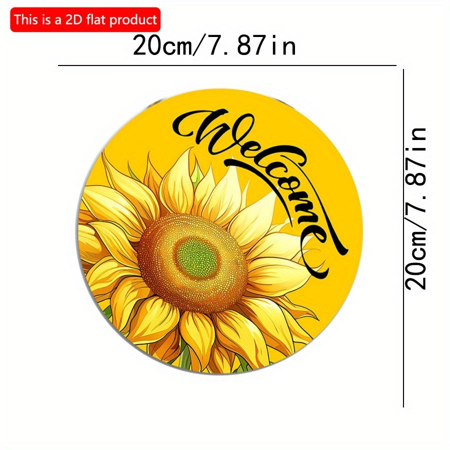 2D плоский 20*20см1шт Добро пожаловать Желтый Яркий узор подсолнуха Дверной Арт Декоративная табличка, Яркий Цветочный Домашний Деревянный Круглый Орнамент для окна и сада