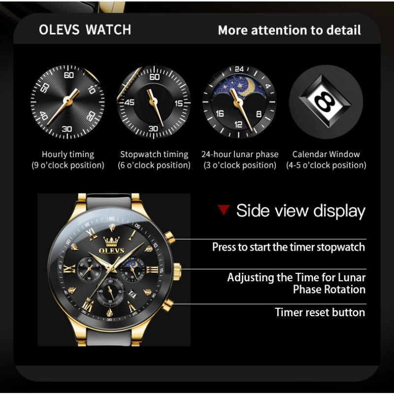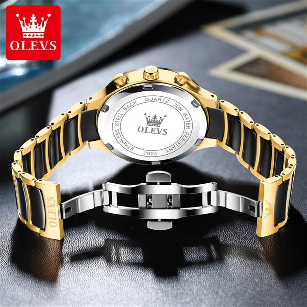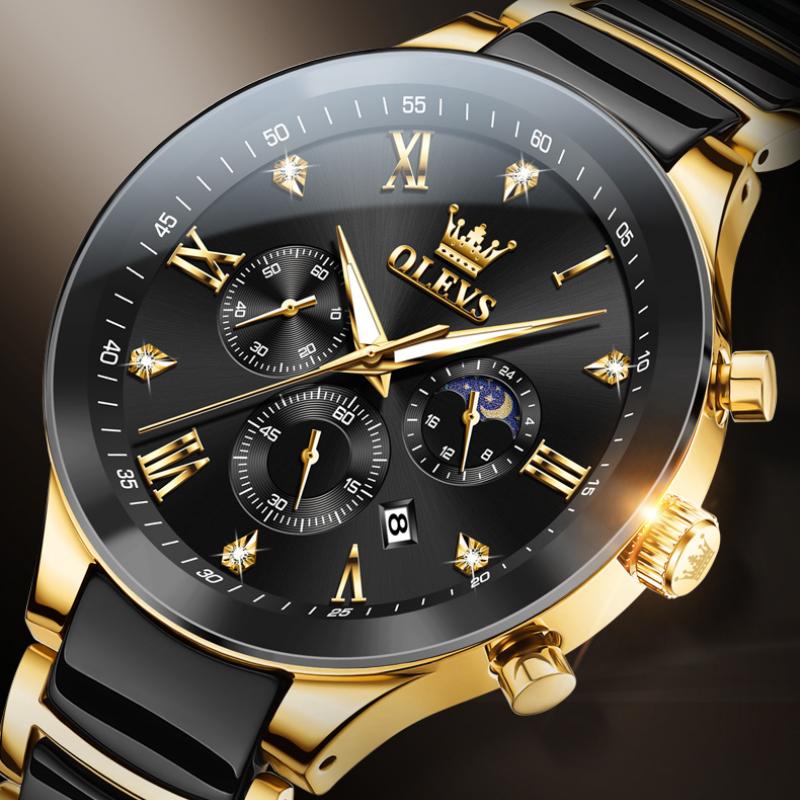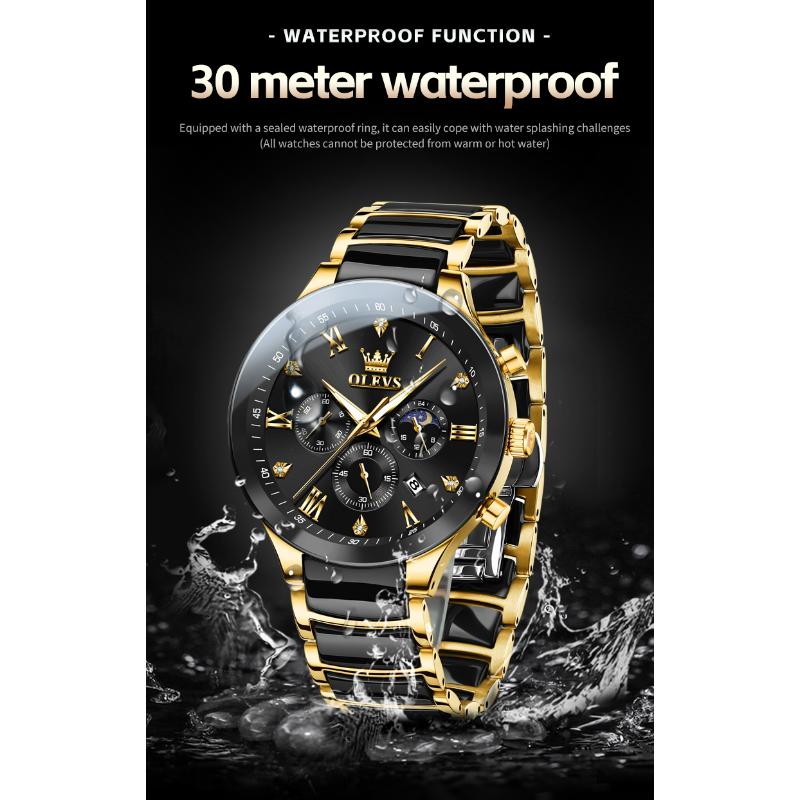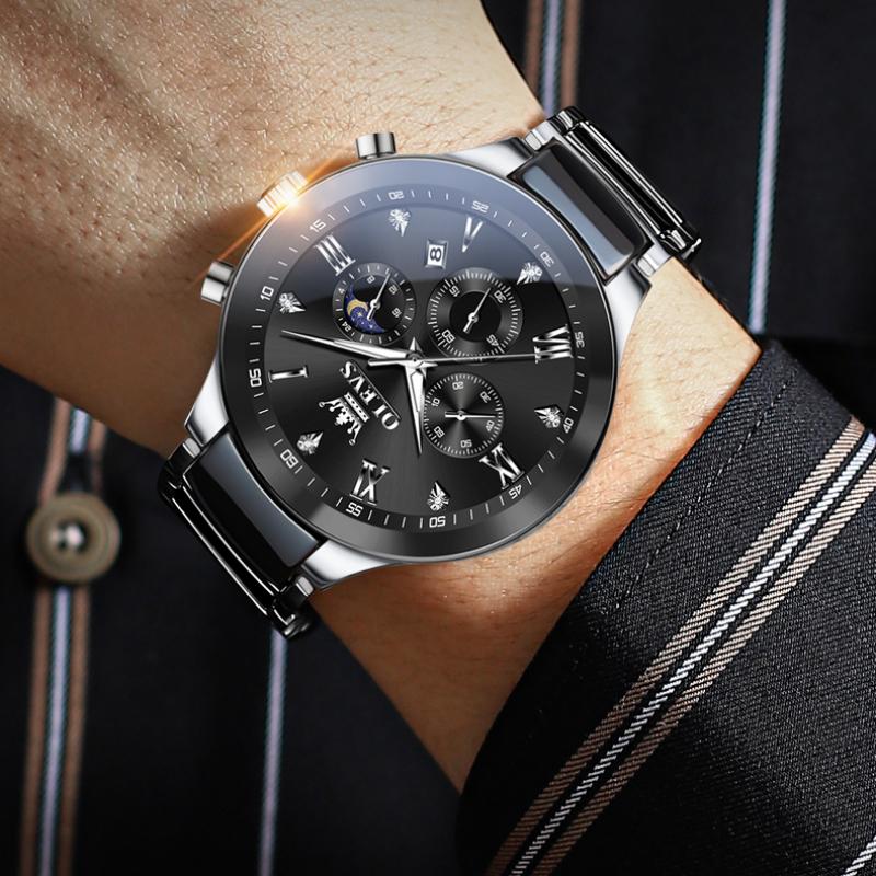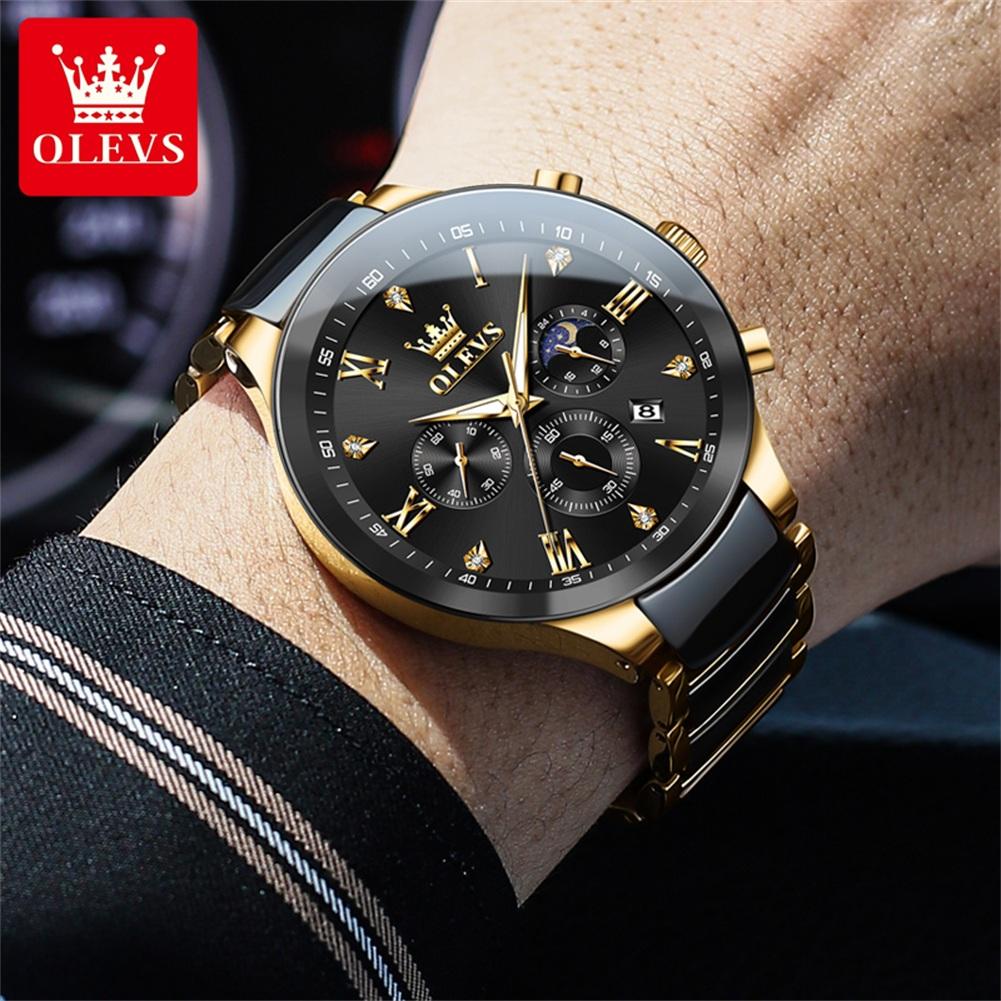 OLEVS Мужские часы бизнес многофункциональный хронограф кварцевые наручные часы для мужчин дата луна водонепроницаемые керамические часы