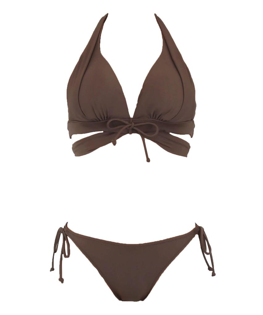 Купальник Бикини натуральный, но упругий Ап коричневый [Sanai Paradise] комплект, [Натуральный бюстгальтер], бикини без косточек, 55-53-3-1652,