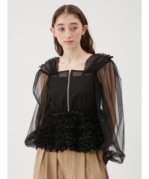 Блузка с баской и оборками из тюля RWFT251070 BLK [FurFur] для женщин