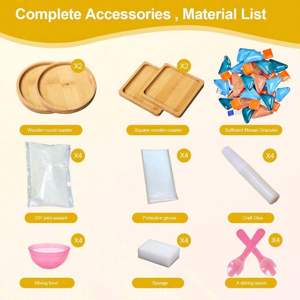 4 шт. Стеклянная мозаичная плитка своими руками для поделок, наборы для мозаики разных цветов с деревянной подставкой для взрослых, материалы для мозаичных поделок