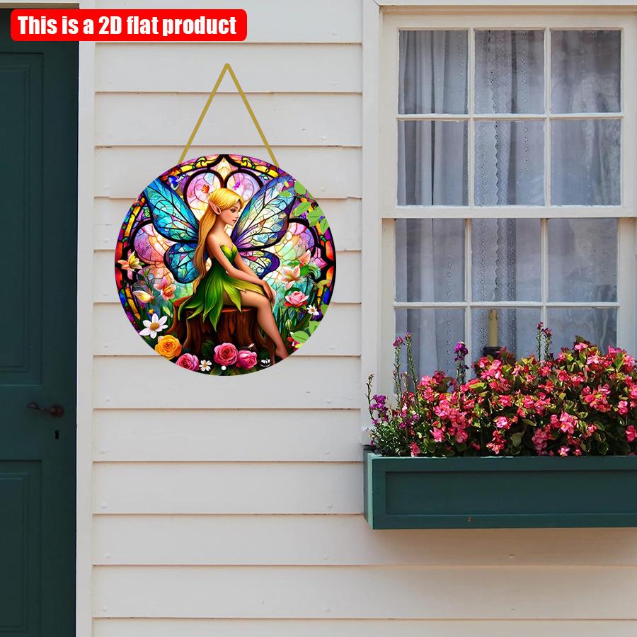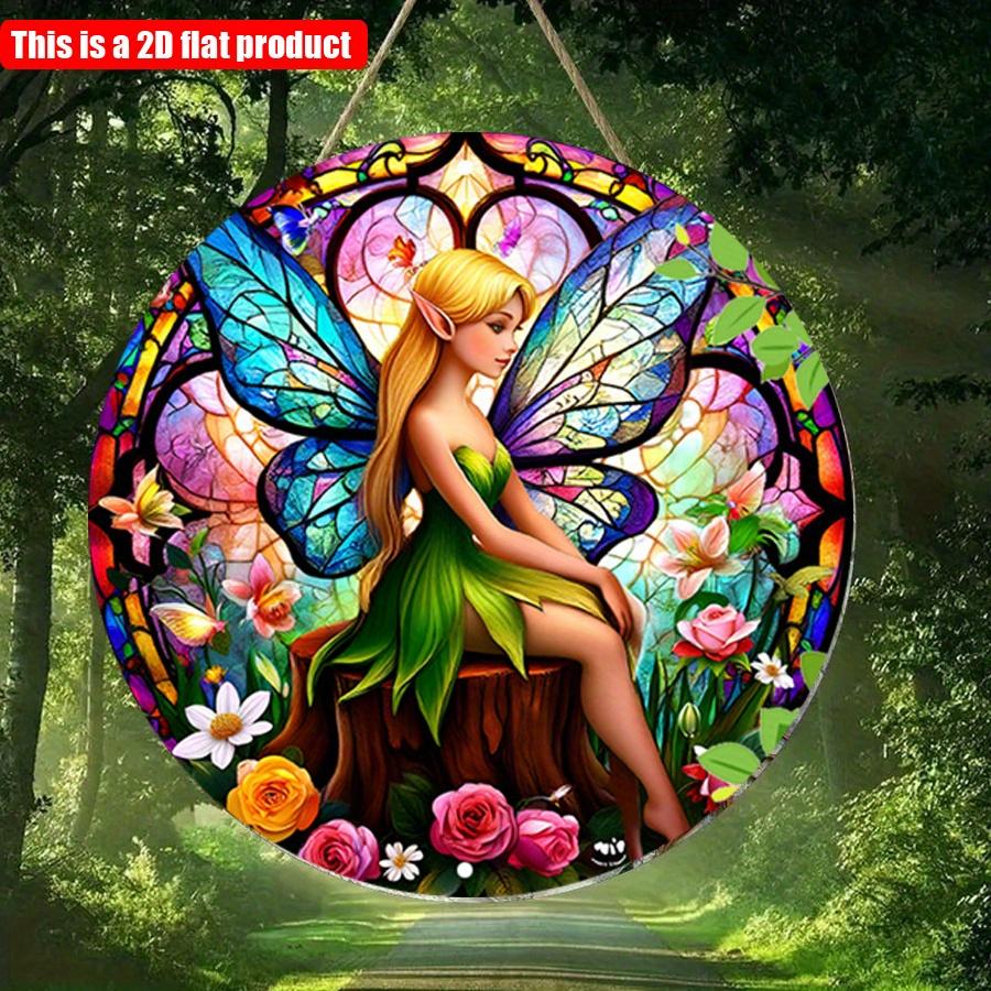 2D плоская 20*20см1шт Очаровательная эльфийская фея с разноцветными крыльями бабочки Дизайнерский декор для стен, Художественная табличка на тему весенней феи, Идеально подходит для дома и офиса,