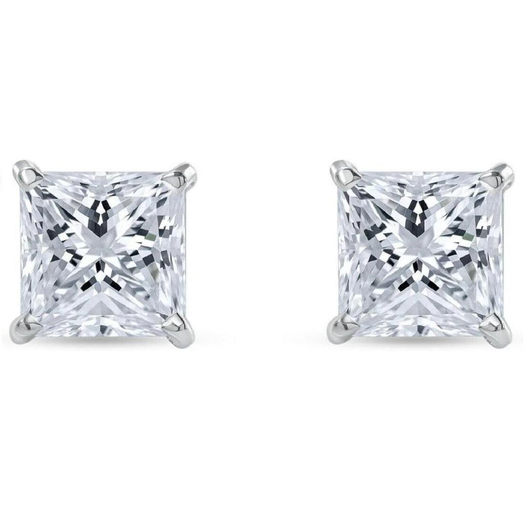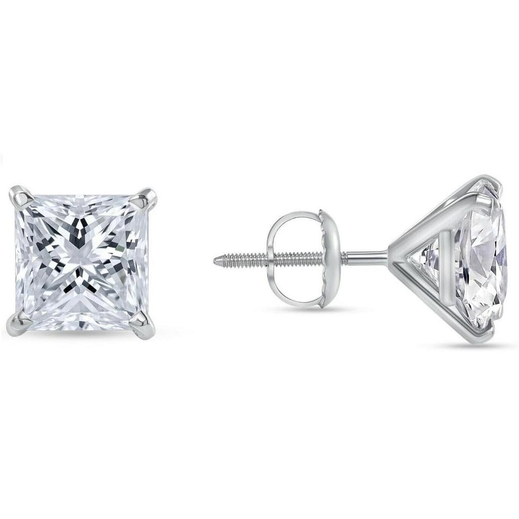 Jewels Prim 6 карат Серьги-пусеты с принцессой огранки из настоящего цельного 14-каратного белого золота, винтовой замок, мартини
