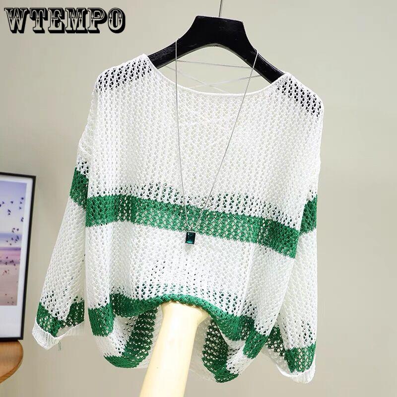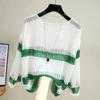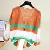 Летняя одежда Ажурная трикотажная рубашка женская полосатая контрастная цветная рубашка с тонким верхом маленькая свежая