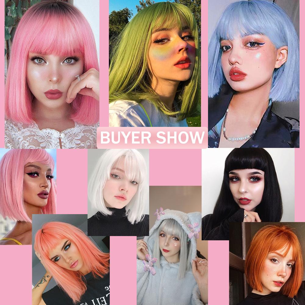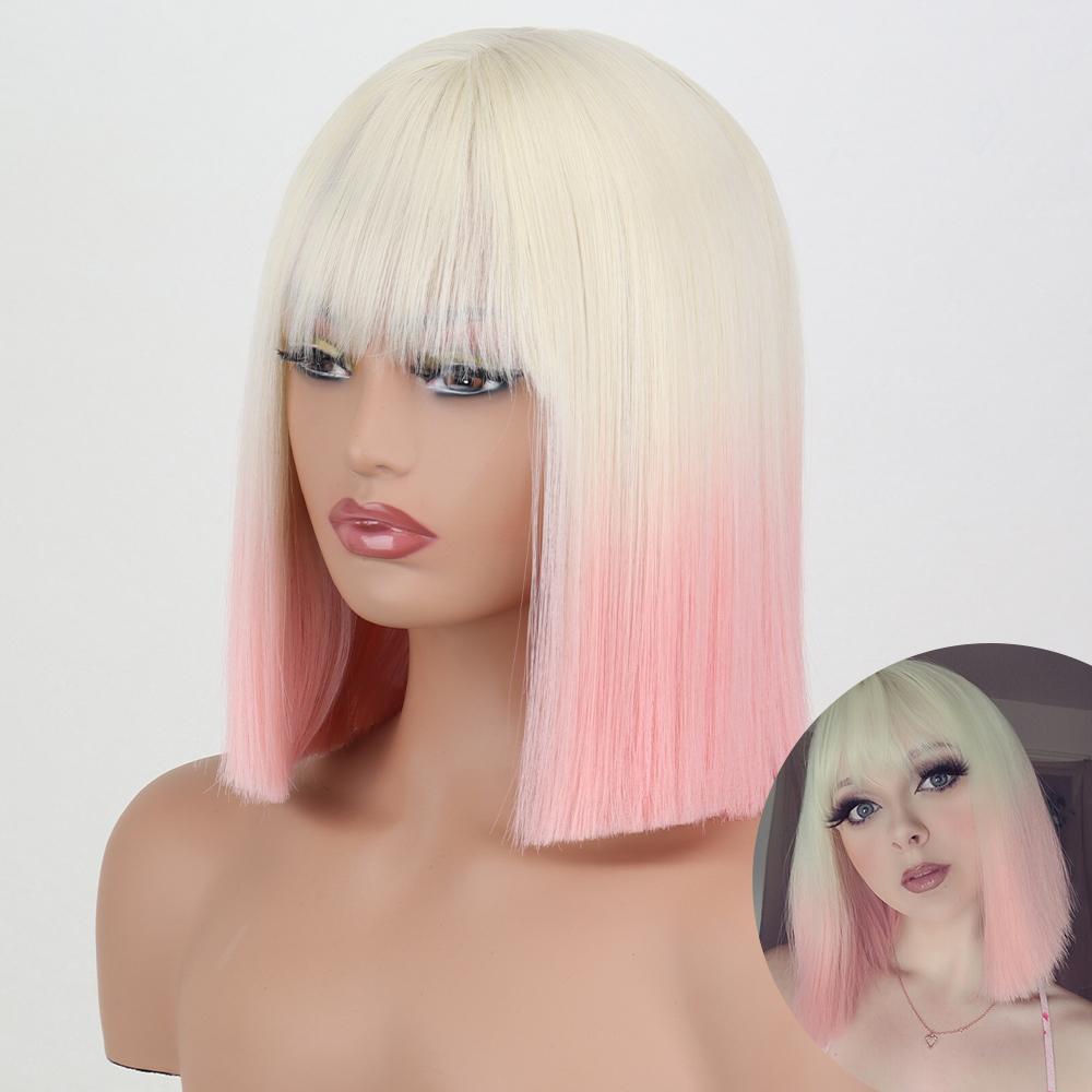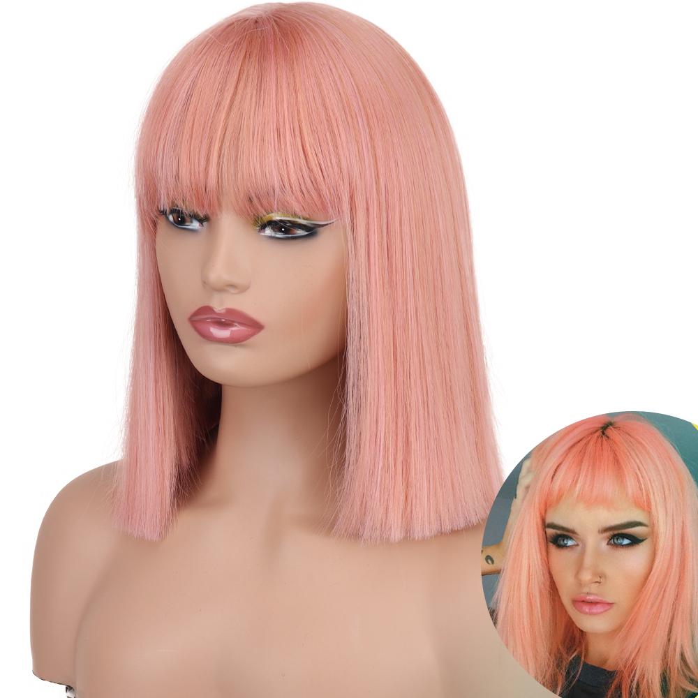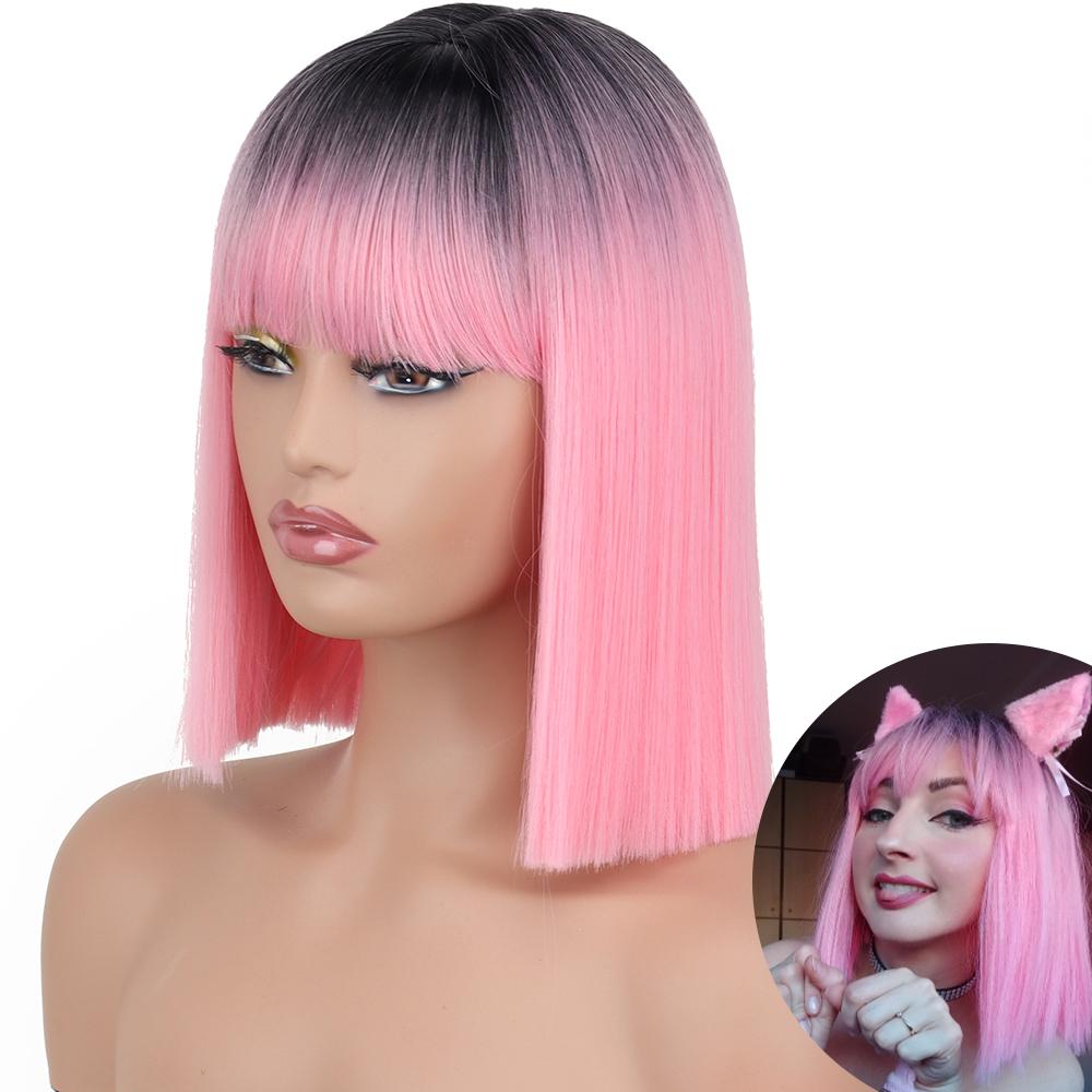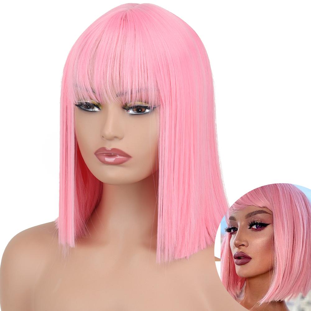 AZQUEEN синтетические парики боб, короткий прямой парик с челкой для женщин, черный, розовый парик для вечеринки, повседневного использования, длина до плеч