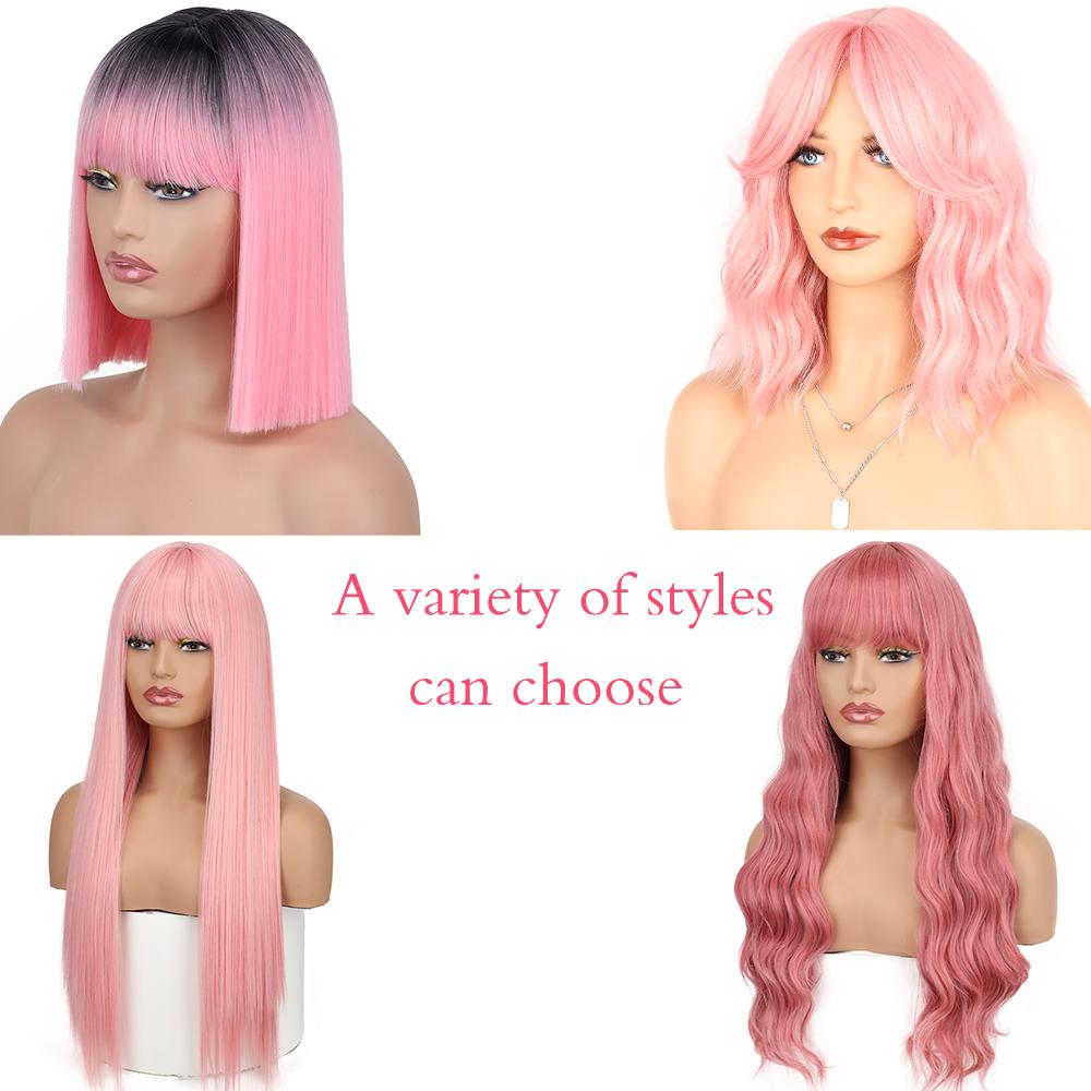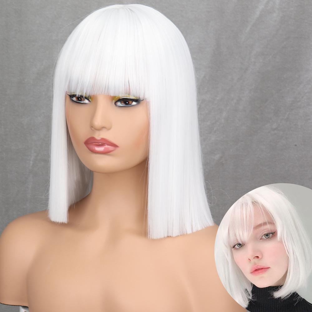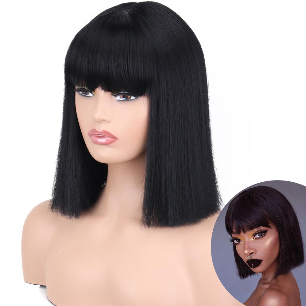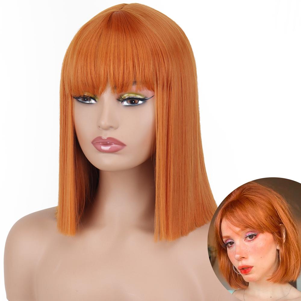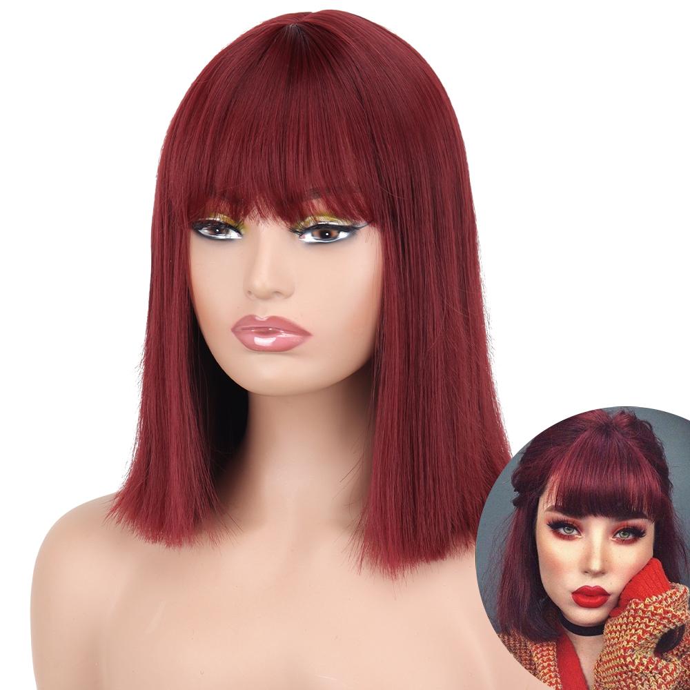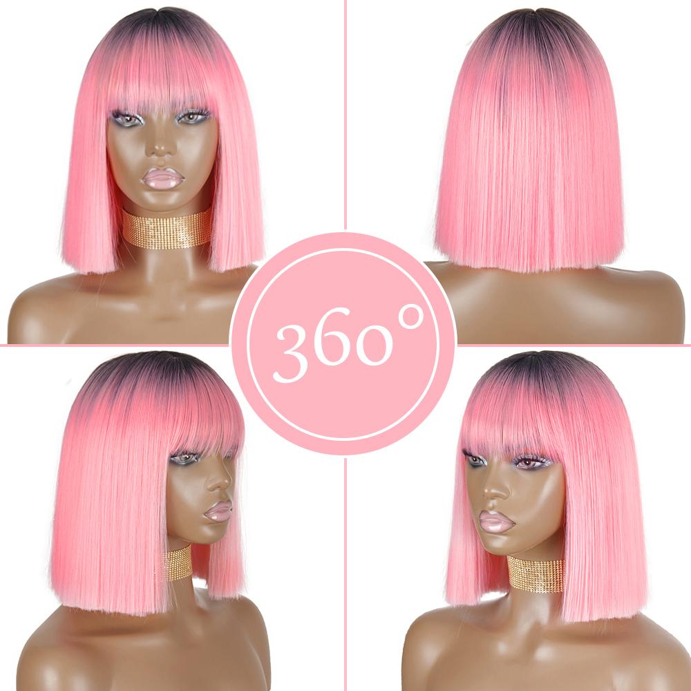 AZQUEEN синтетические парики боб, короткий прямой парик с челкой для женщин, черный, розовый парик для вечеринки, повседневного использования, длина до плеч