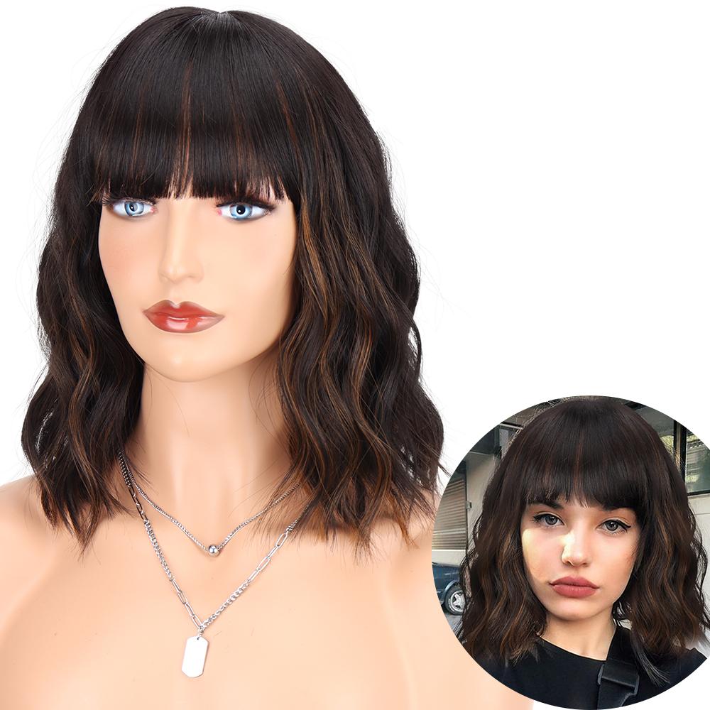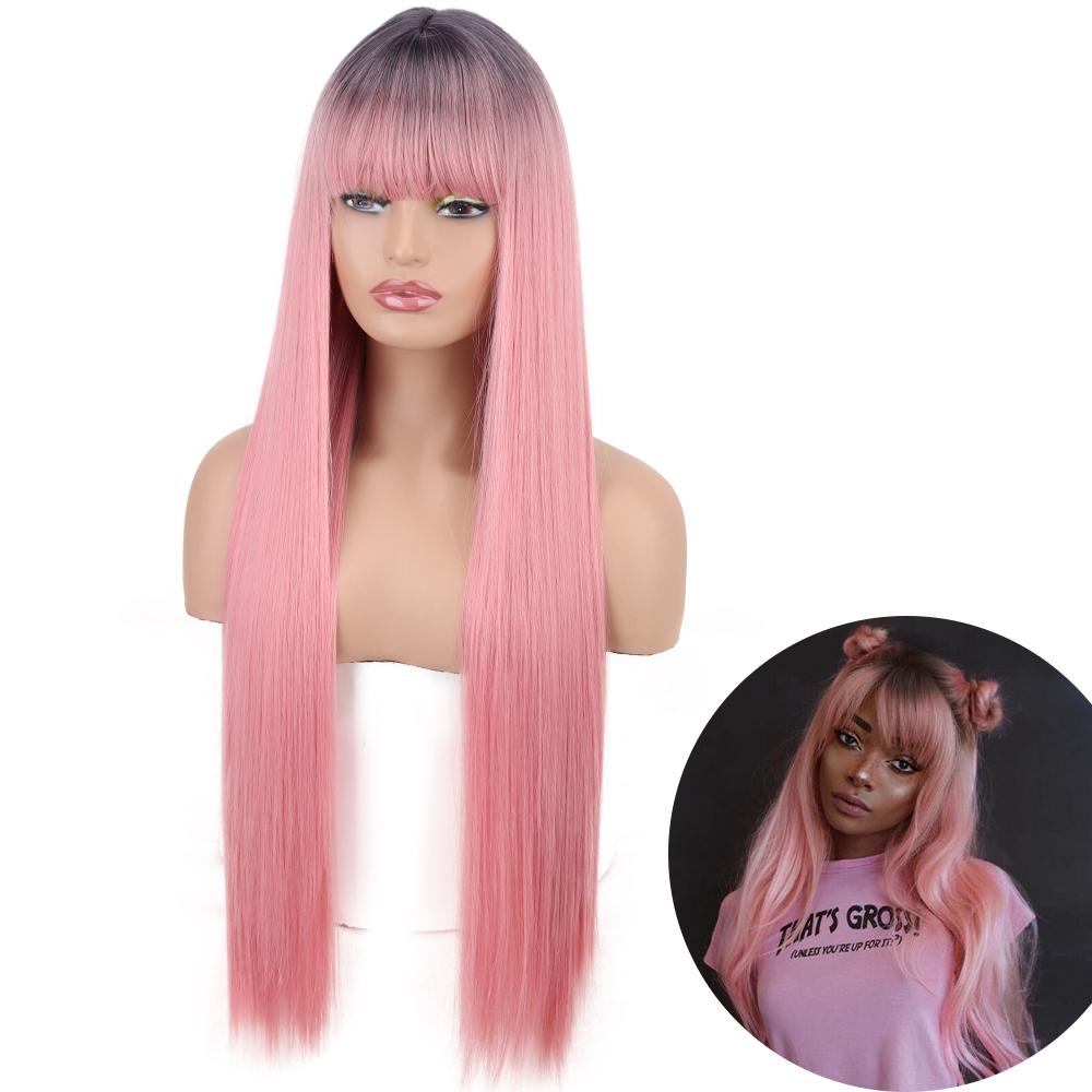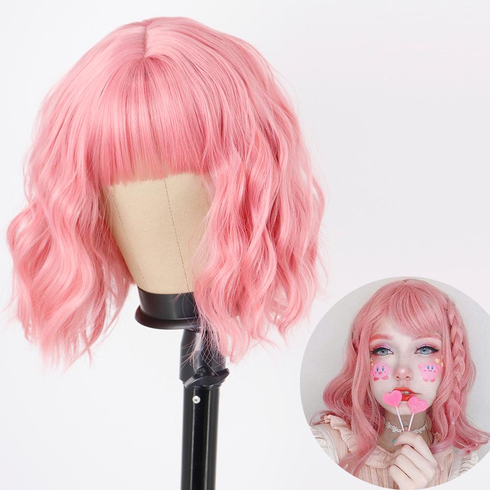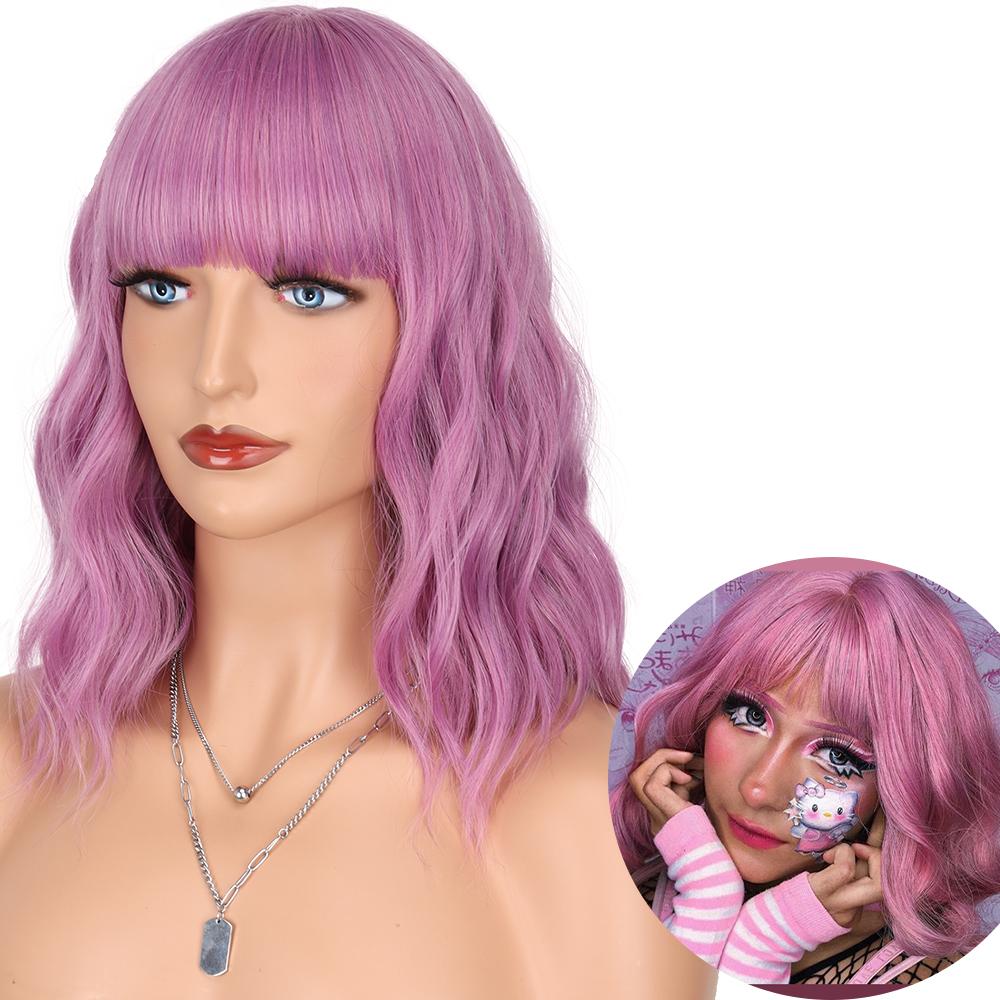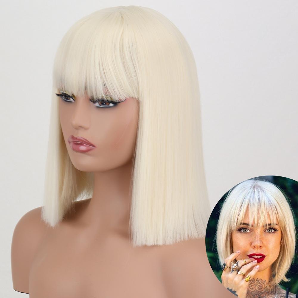 AZQUEEN синтетические парики боб, короткий прямой парик с челкой для женщин, черный, розовый парик для вечеринки, повседневного использования, длина до плеч