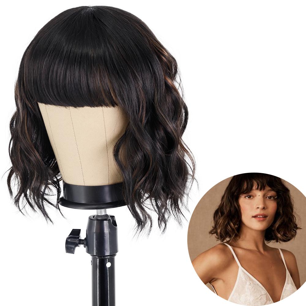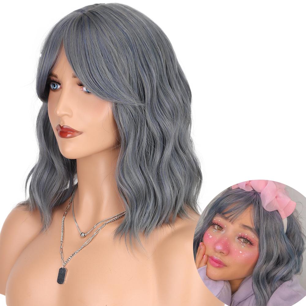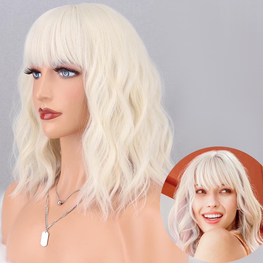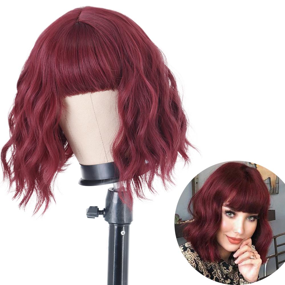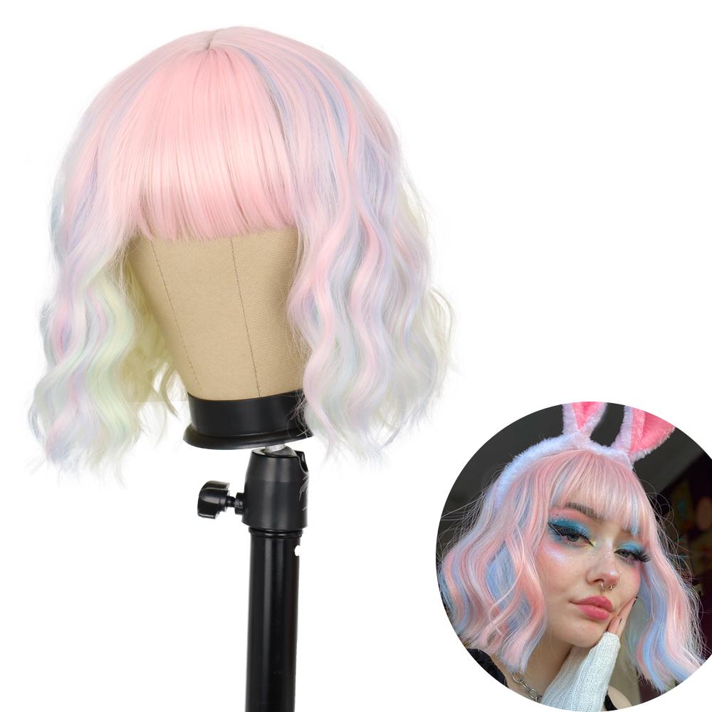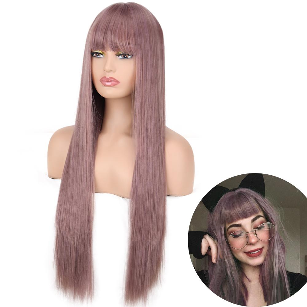 AZQUEEN синтетические парики боб, короткий прямой парик с челкой для женщин, черный, розовый парик для вечеринки, повседневного использования, длина до плеч
