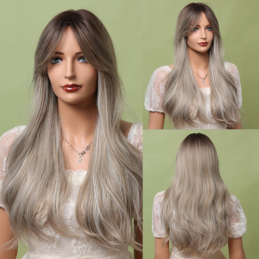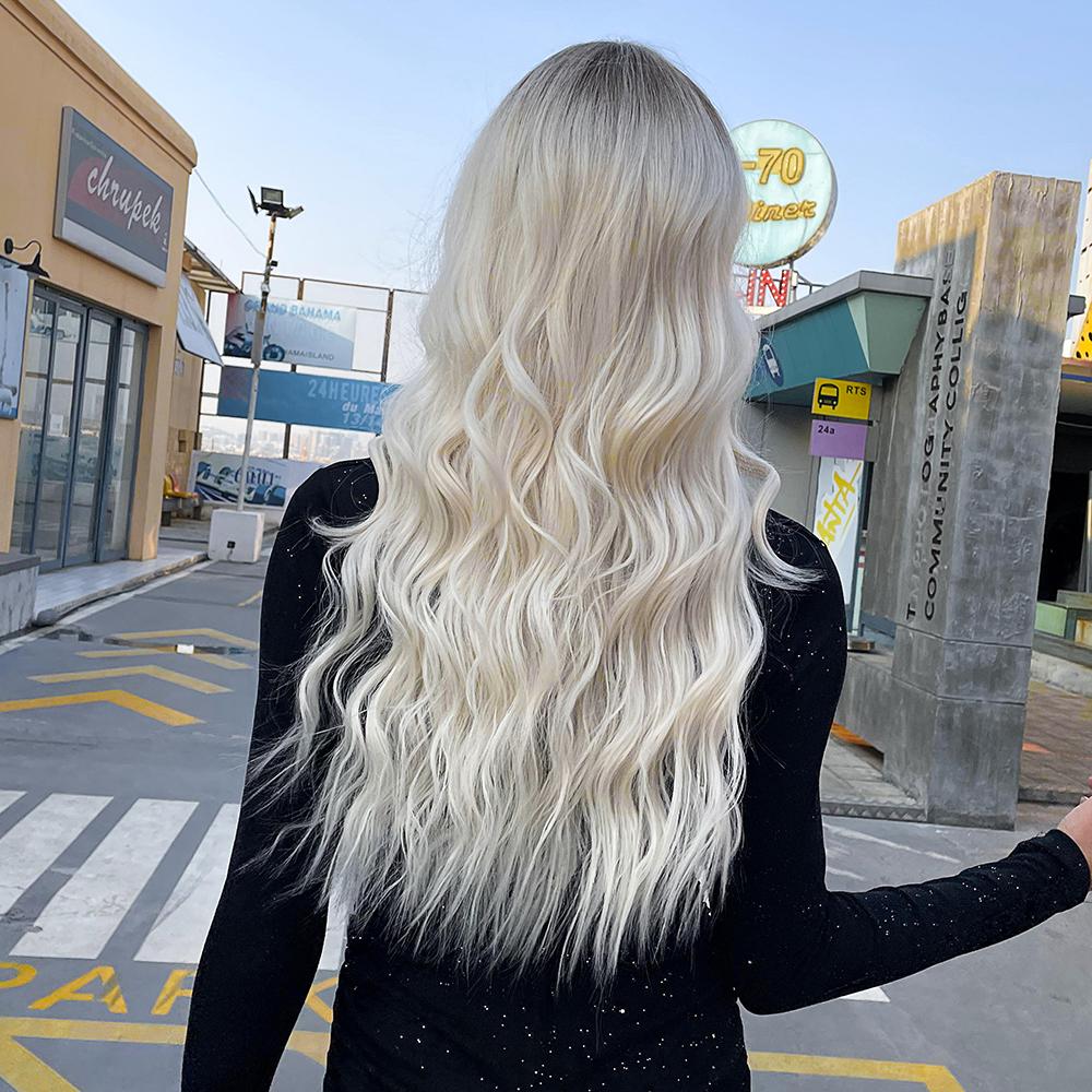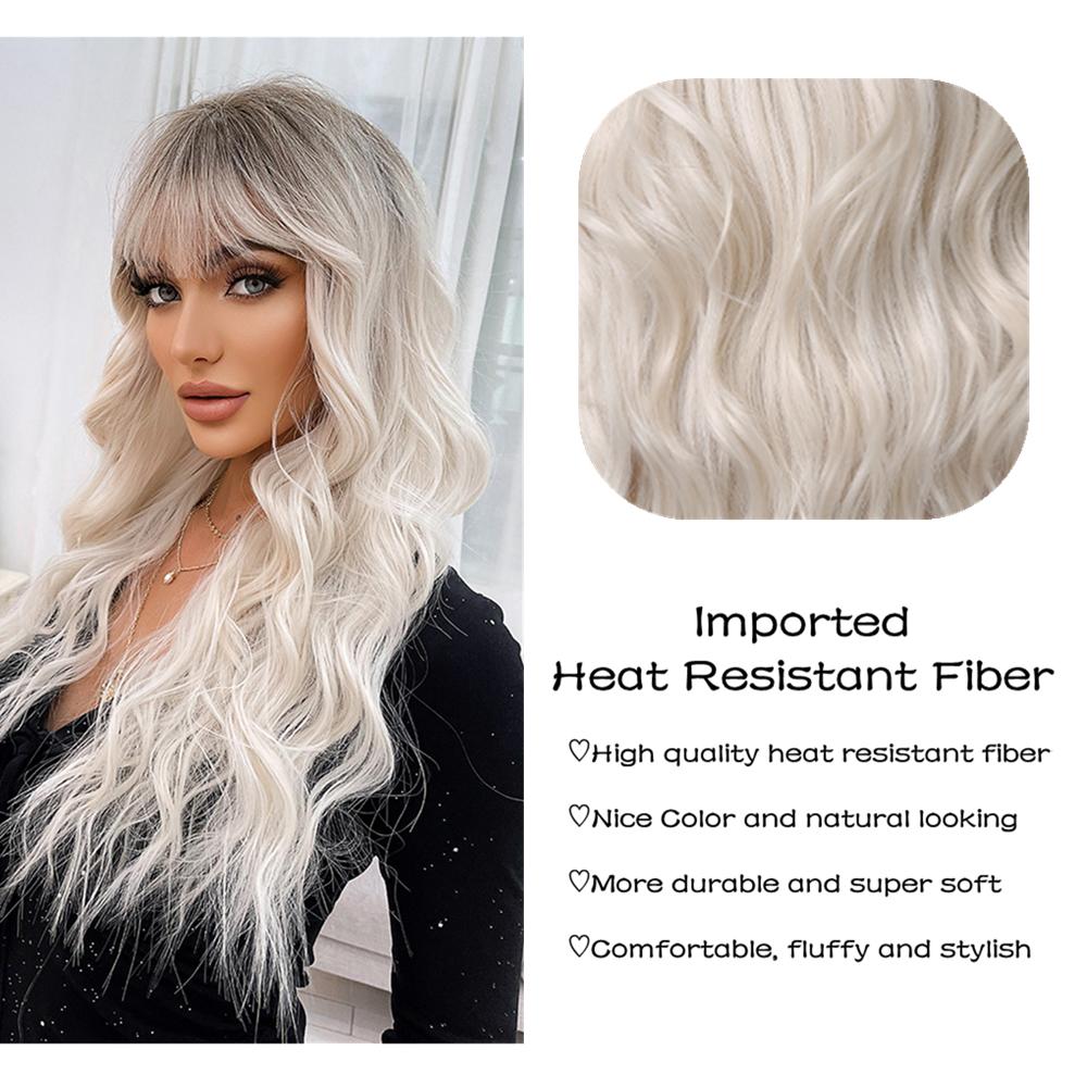 LOUIS FERRE Длинный платиновый синтетический парик для белых женщин, светло-русые парики с омбре, с челкой, повседневный косплей, высокая температура