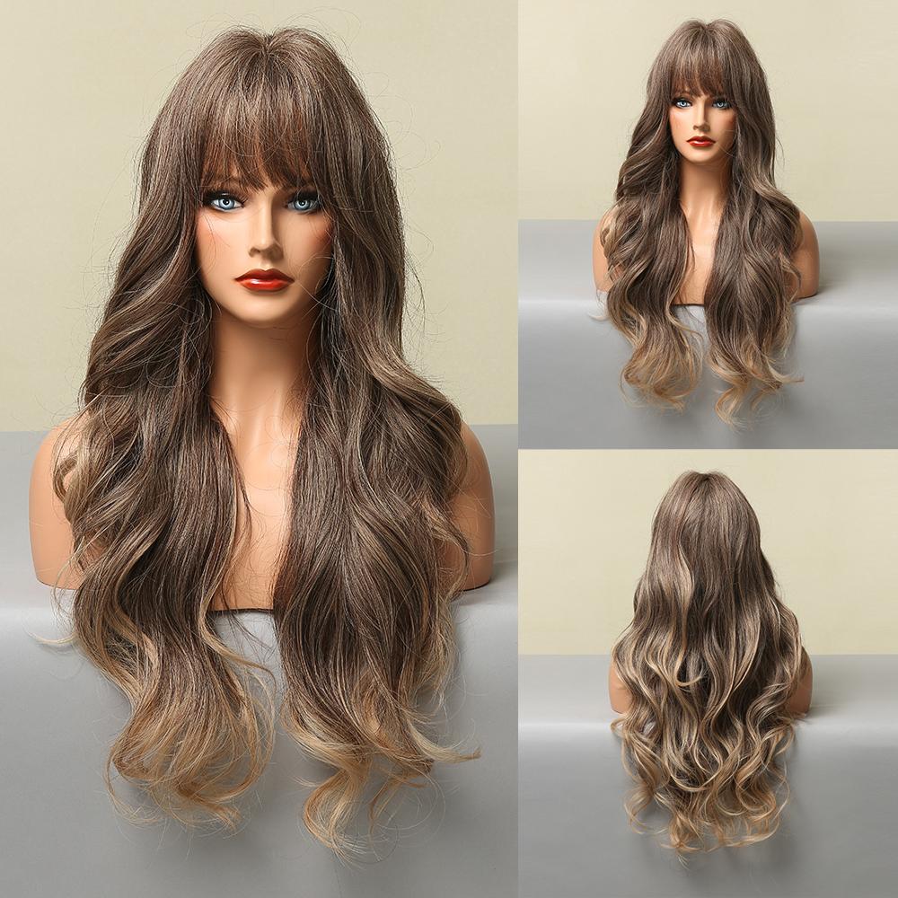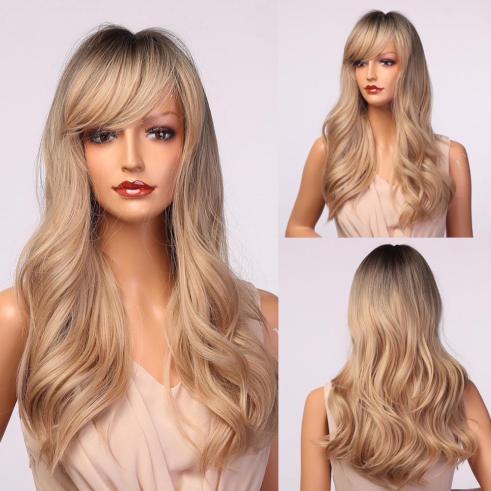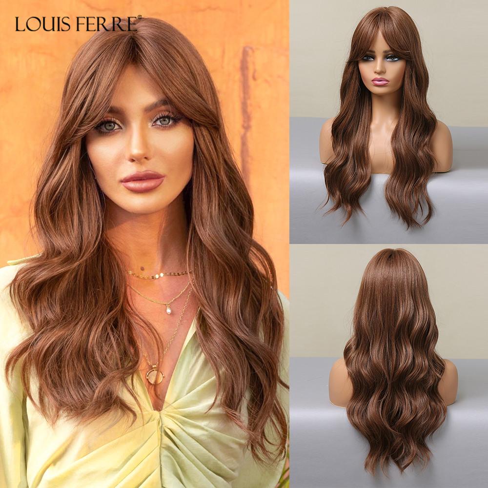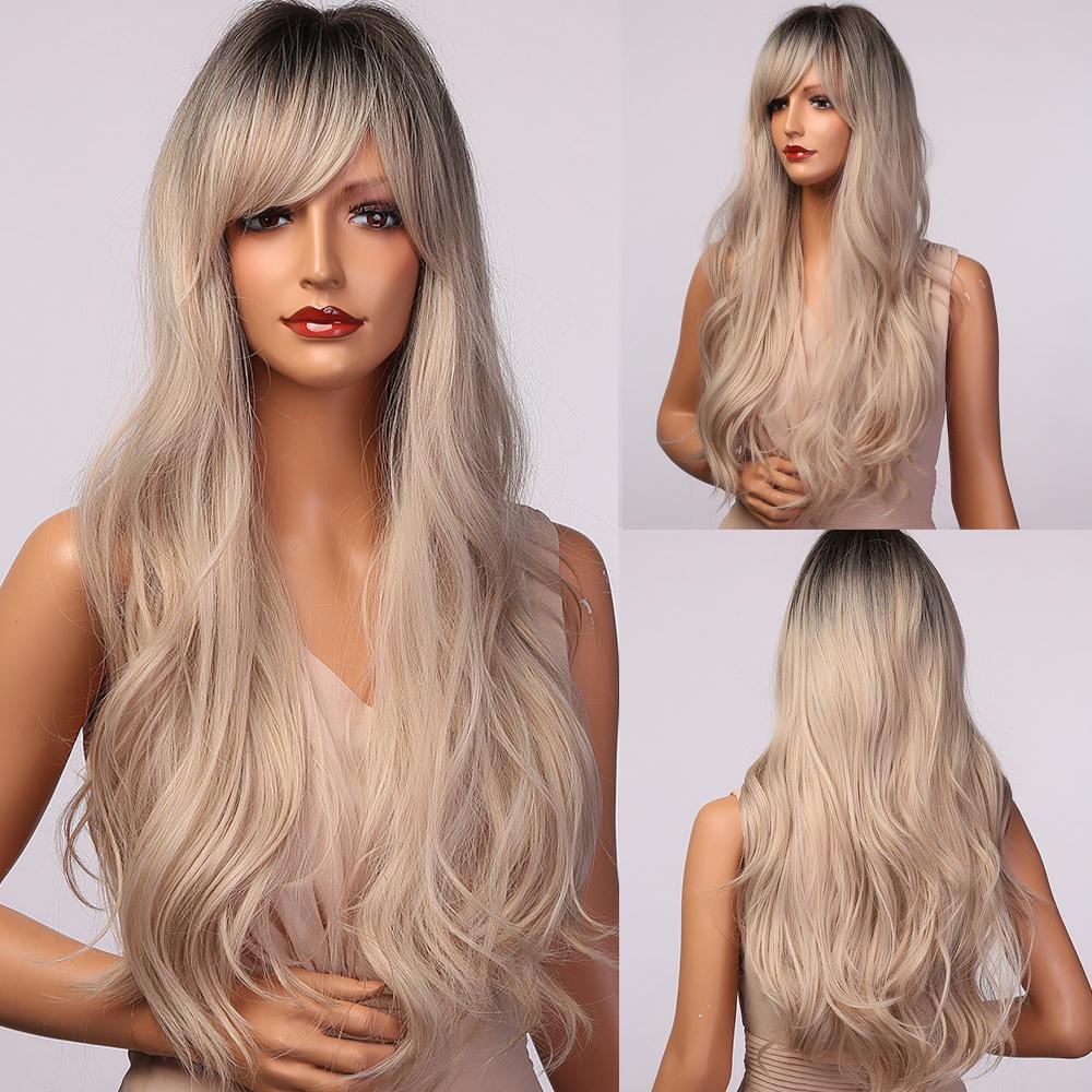 LOUIS FERRE Длинный платиновый синтетический парик для белых женщин, светло-русые парики с омбре, с челкой, повседневный косплей, высокая температура