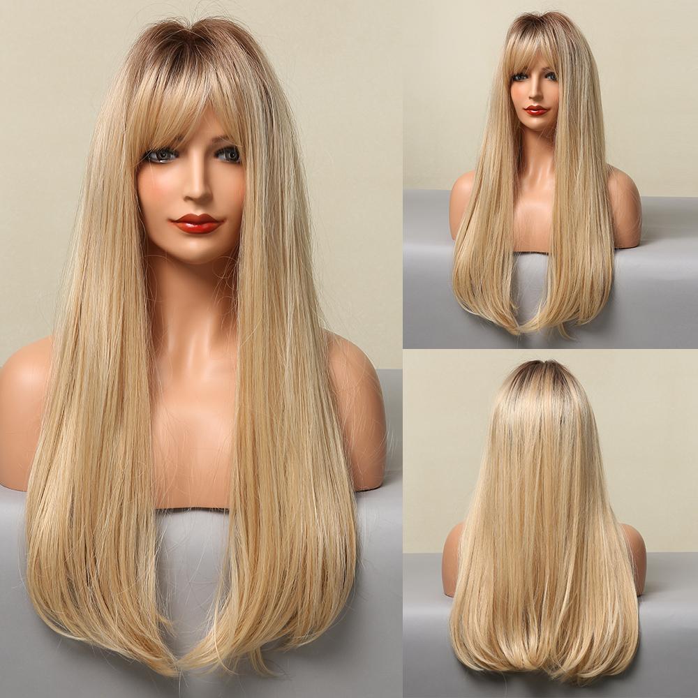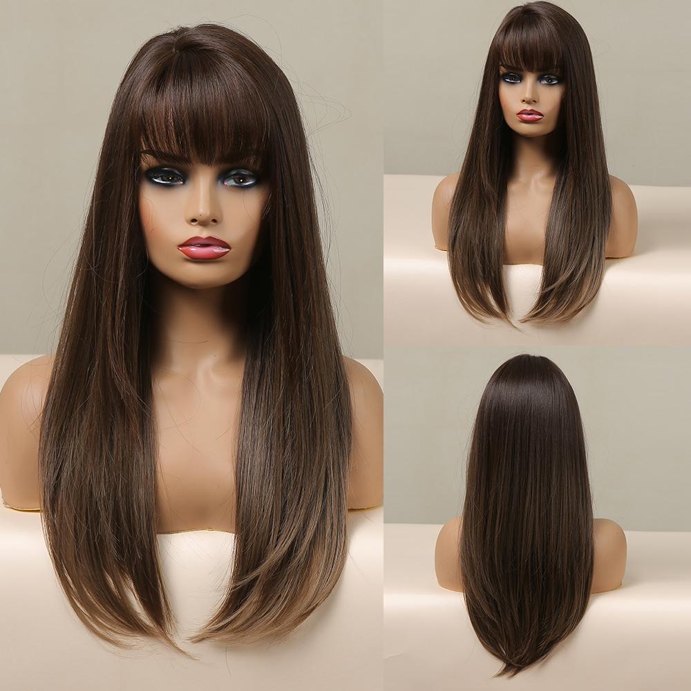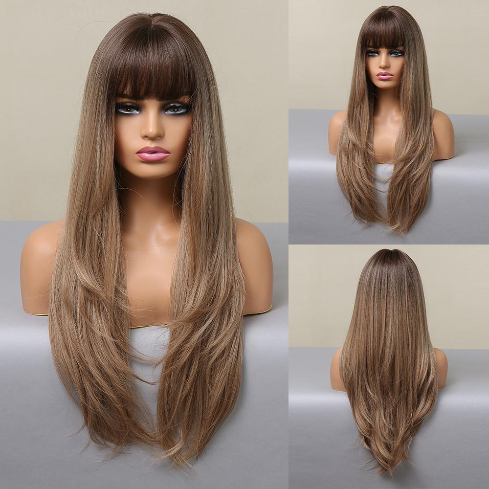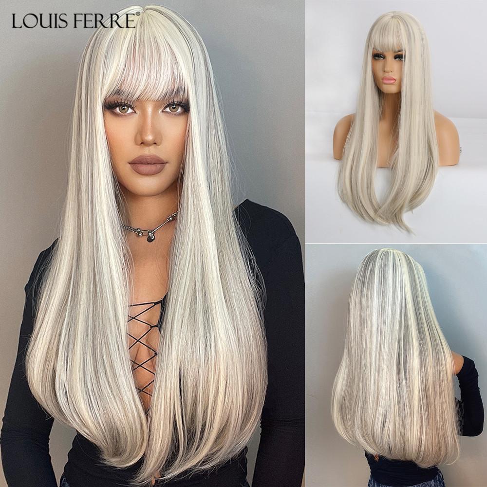 LOUIS FERRE Синтетические длинные белые парики с челкой Косплей Прямые парики с коричневыми бликами Натуральные искусственные волосы для чернокожих женщин