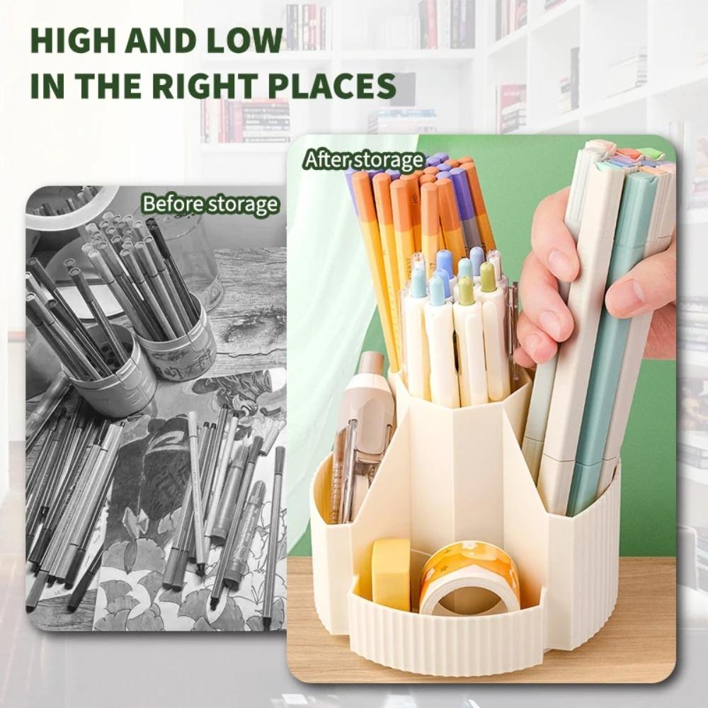 3.Универсальное решение для хранения данных: Этот держатель для ручек отлично подойдет не только для офисных принадлежностей, но и для хранения личных вещей, таких как кисточки для макияжа, лаки для ногтей и помады.. Благодаря своей адаптивности он подходит для различных помещений, включая офисные столы, домашние кабинеты, классы, гостиные и туалетные столики.