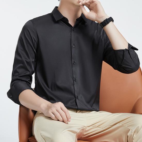 Эта универсальная мужская рубашка с длинным рукавом — неотъемлемая часть гардероба.. Изготовлен из высококачественной ткани из полиэфирного волокна, обеспечивает удобную и дышащую посадку.. Однотонный дизайн с воротником-лацканами и длинными рукавами добавит изысканности любому наряду..