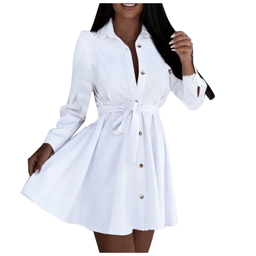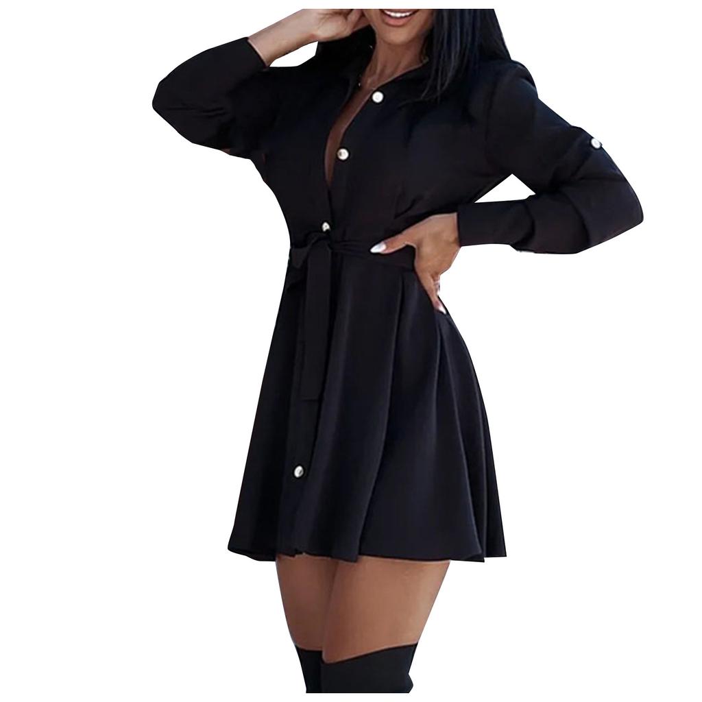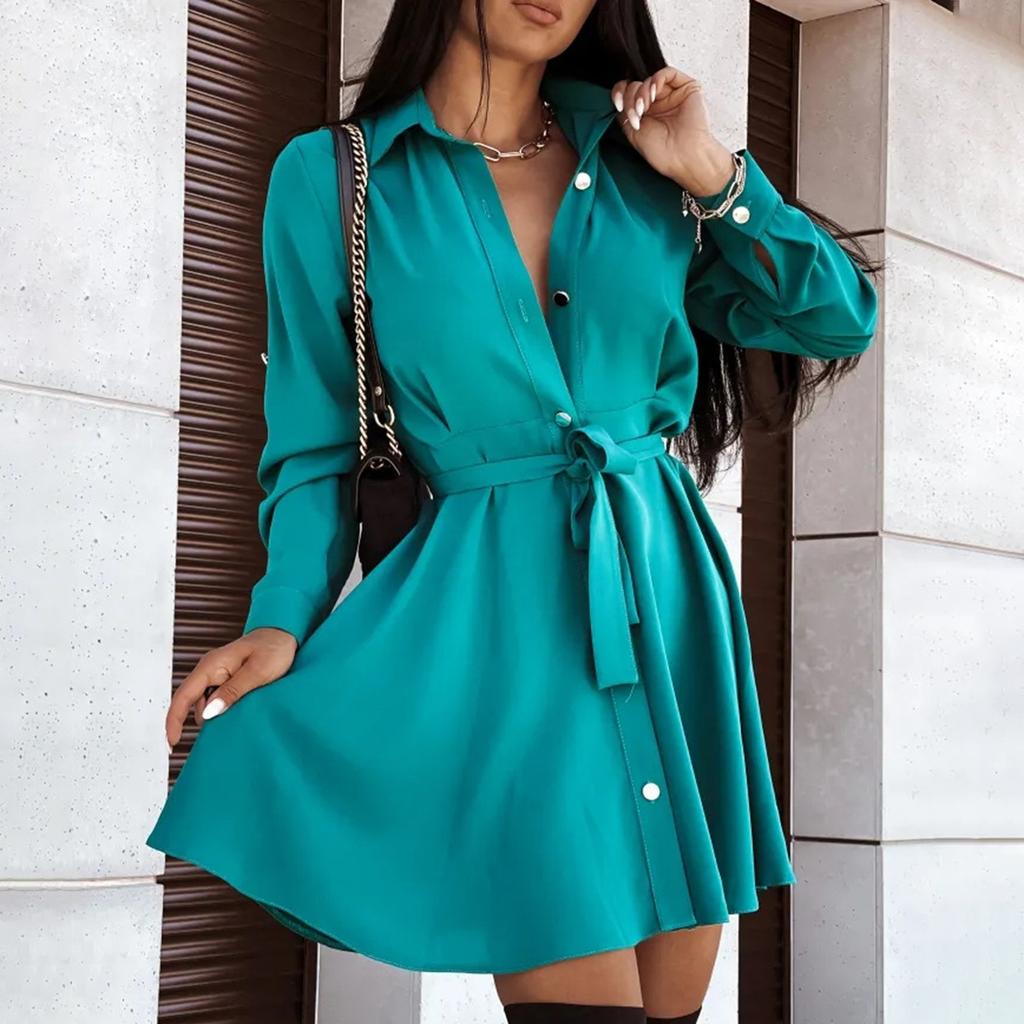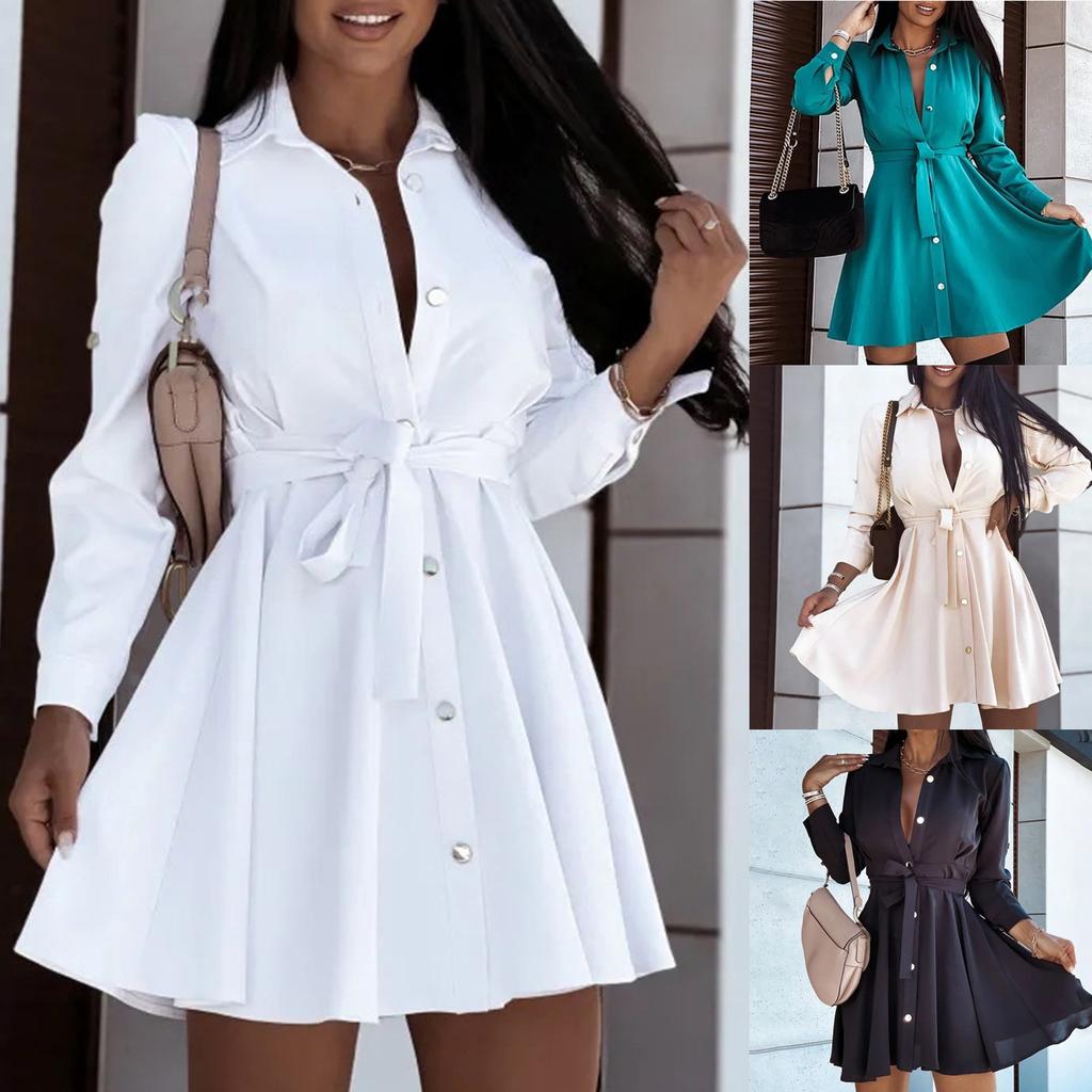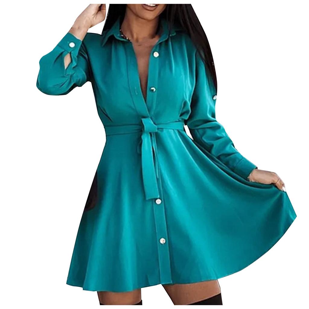 4. особенности: Повседневный стиль, показывающий ваш уникальный шарм и жизненную силу, добавить ощущение элегантности и стиля. Женская мода Повседневная однотонная однотонная лацкань с длинными рукавами однобортная строчка талия галстук шифон A-line платьет мягкий и удобный, и вам понравится, когда вы его получите