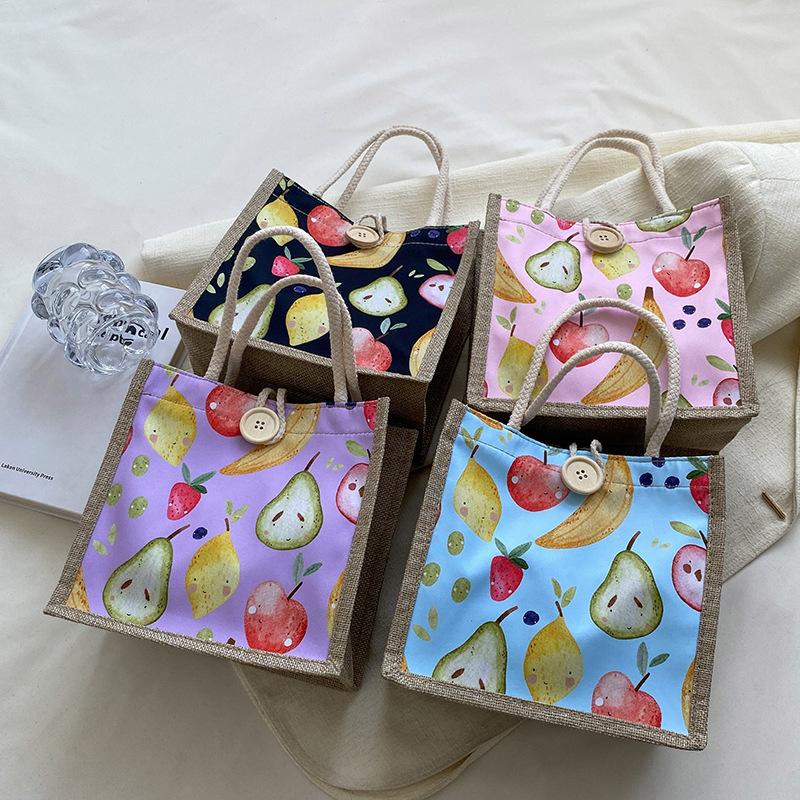 Мультфильм милый студент ручной ланч-бокс сумка Bento женская новая стильная сумка из мешковины оптовая продажа ручной подарочный пакет