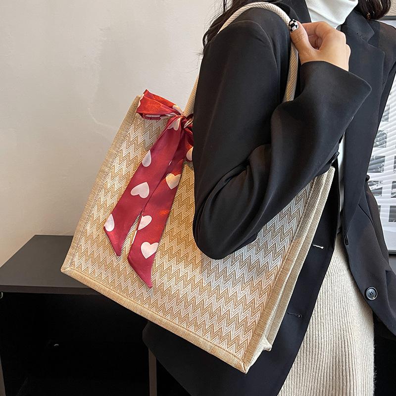Большая вместительная льняная сумка-тоут для женщин в корейском стиле, сумка через плечо для студентов колледжей, модная сумка для мам