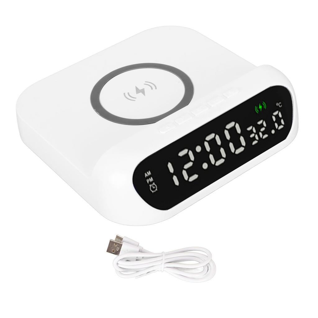 Беспроводное зарядное устройство Будильник Многофункциональный дисплей температуры LED 10 Вт Постепенное увеличение сигнала будильника