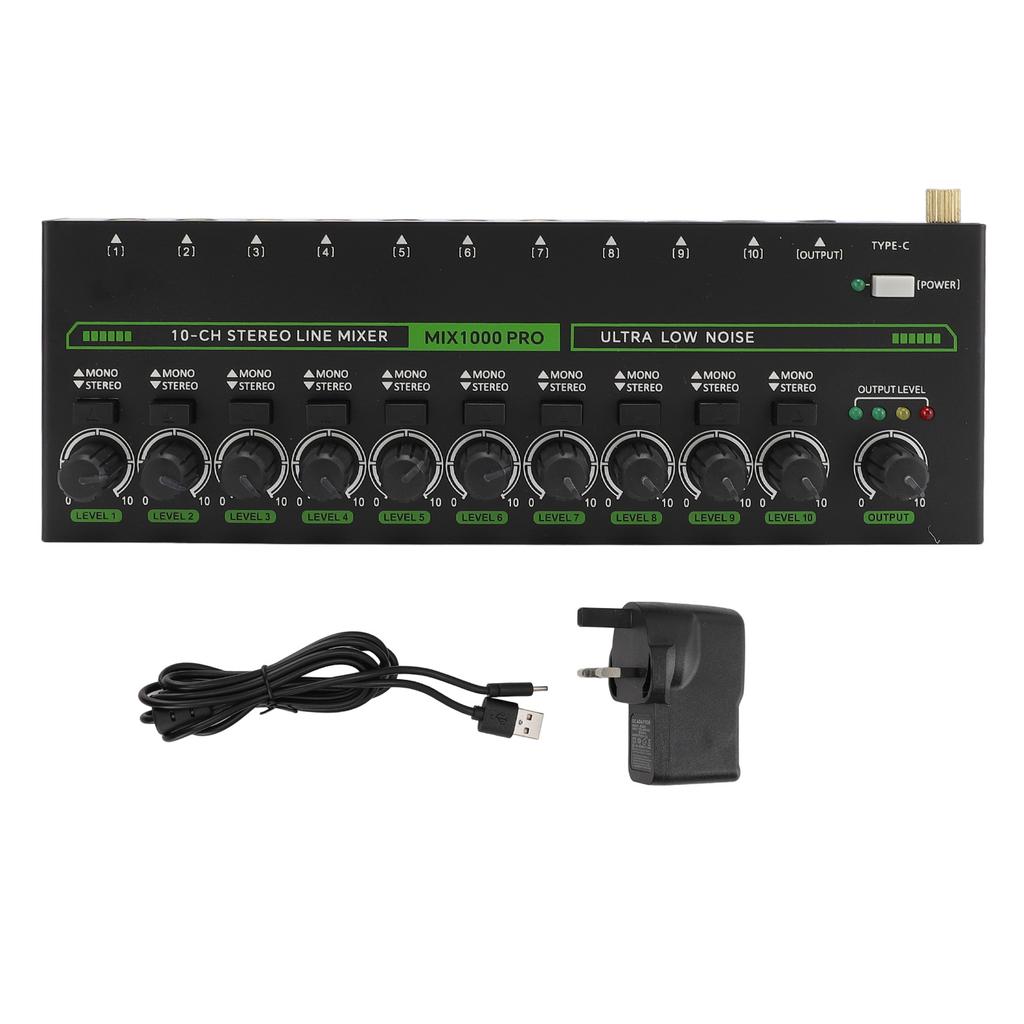 Sound Mixer 10 Channel RGB Professional Stereo Sound Mixer for Amplifier Speaker Handheld