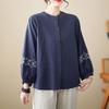 Стильная Свободная блузка с вышивкой в стиле фольклор, весна-осень, однобортная, базовая женская одежда, винтажная повседневная рубашка с круглым вырезом и длинными рукавами — купить товар онлайн с бесплатной доставкой по всему миру!