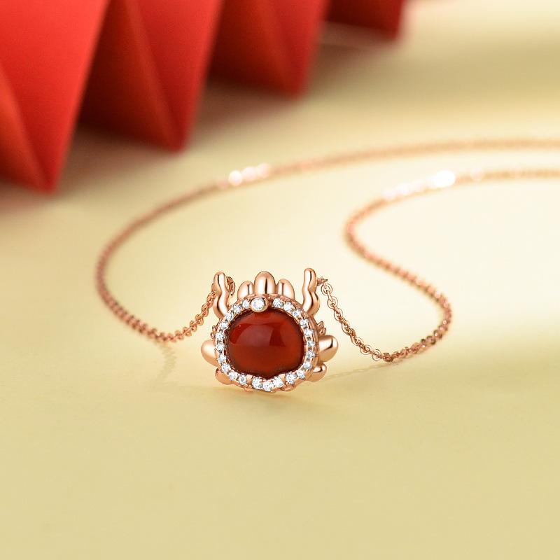 Оригинальная цепочка на ключицу с подвеской в виде дракона в китайском стиле с изображением дракона и зодиака в национальном стиле с красным агатом