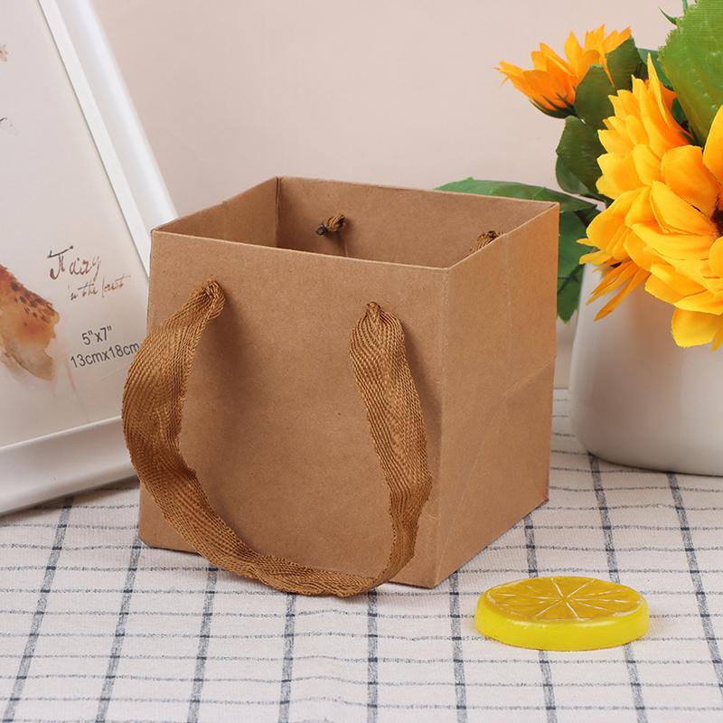 Квадратный портативный мешок из крафт-бумаги, упаковочная сумка для цветов, сумка для подарка на день рождения, свадьбу