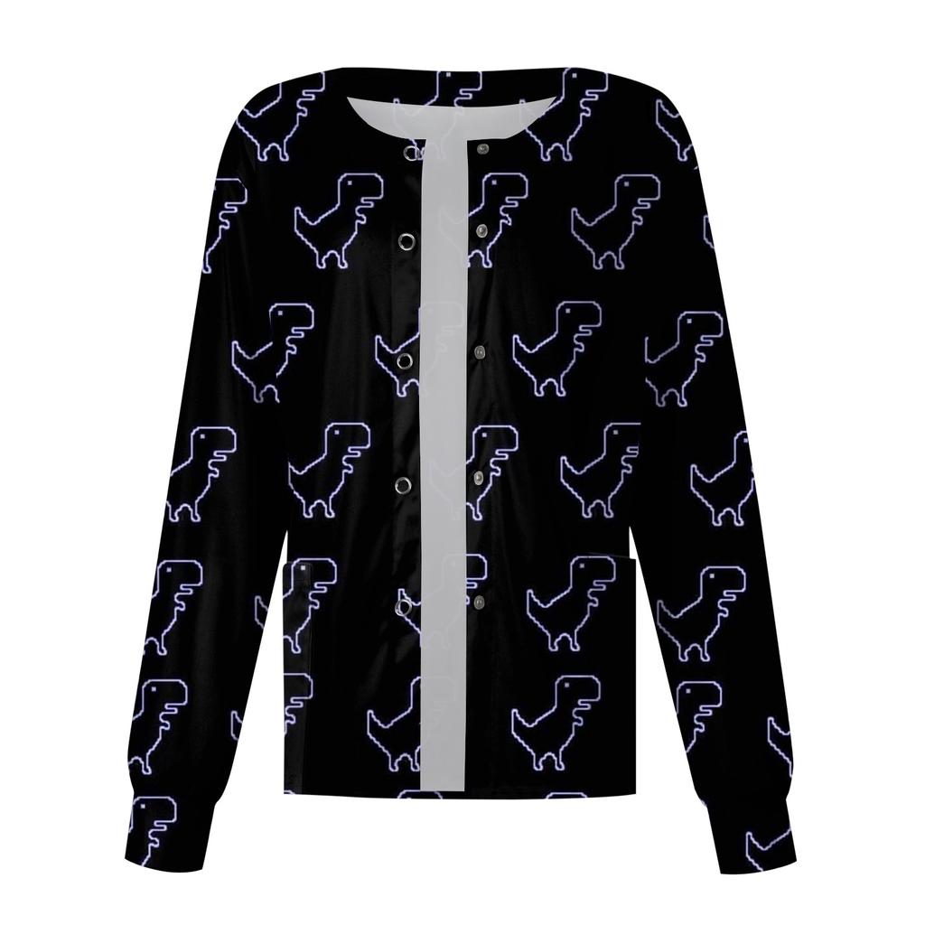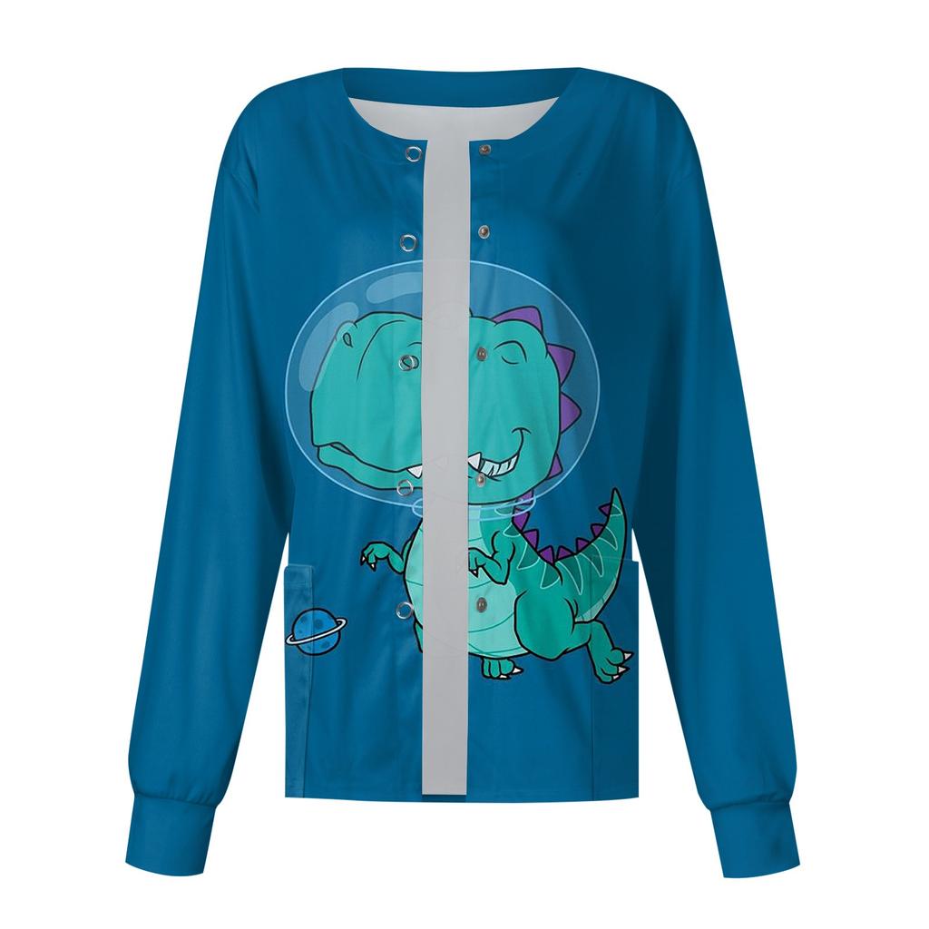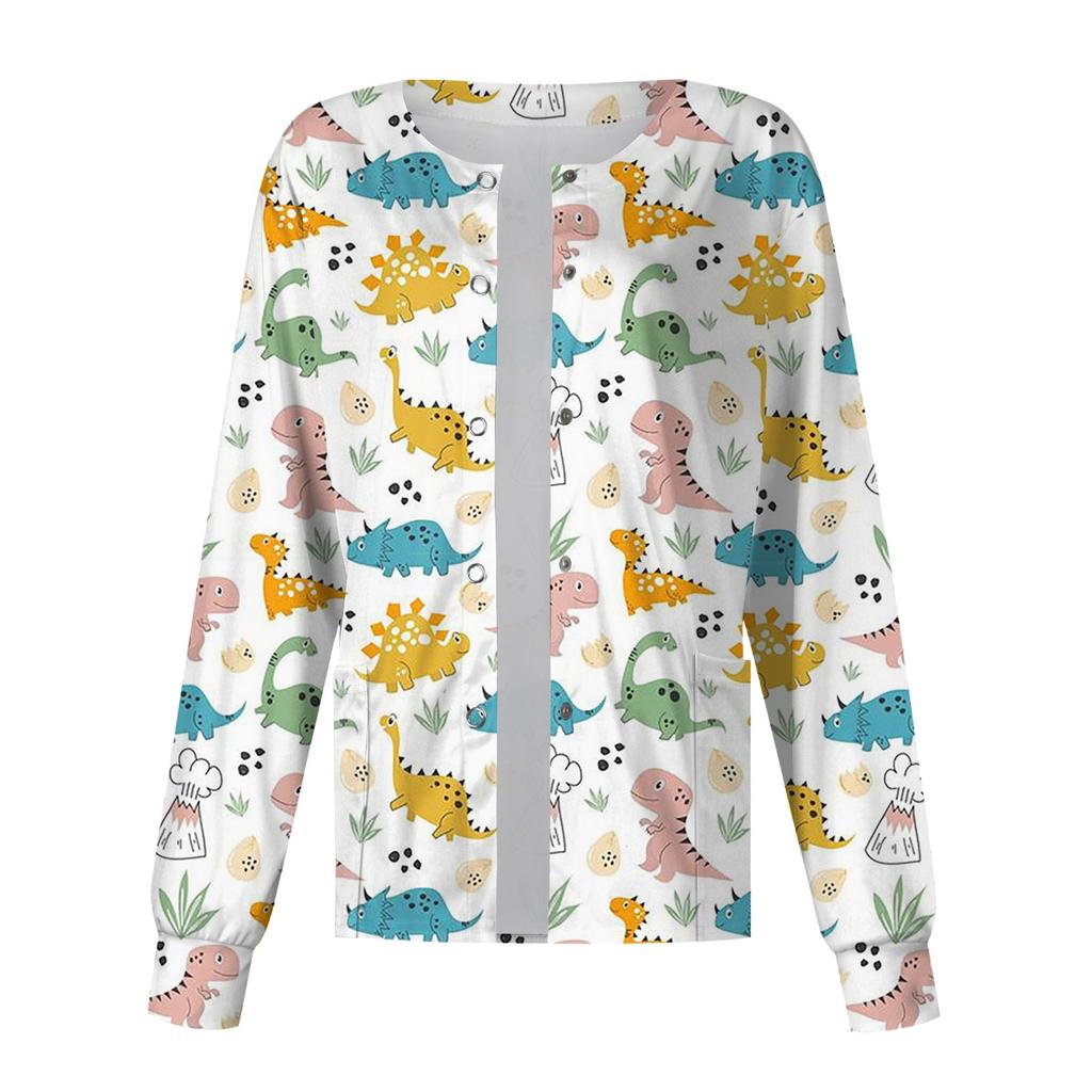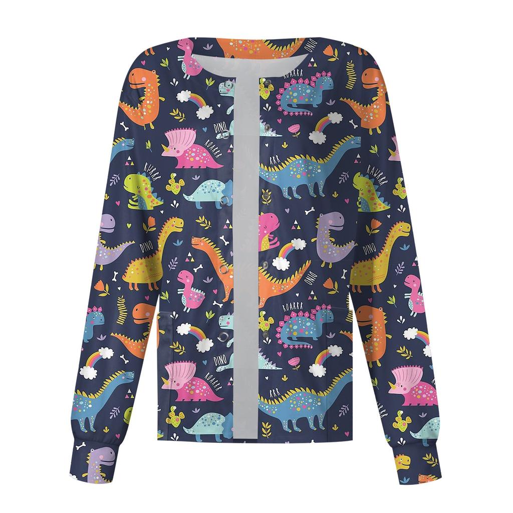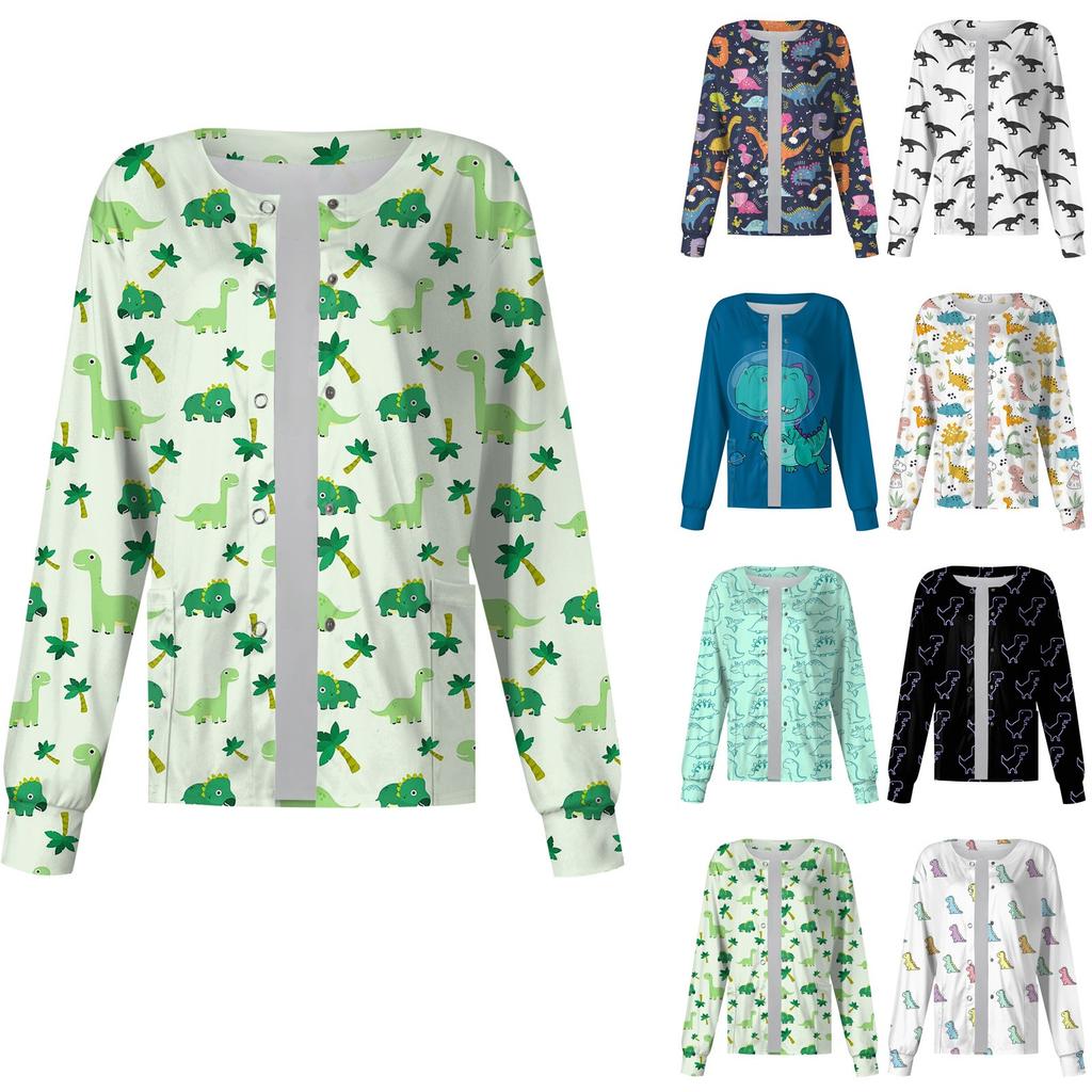 Женский однобортный защитный комбинезон с длинным рукавом и рисунком динозавра, карманный рабочий воротник-стойка, кардиган, куртка, топ