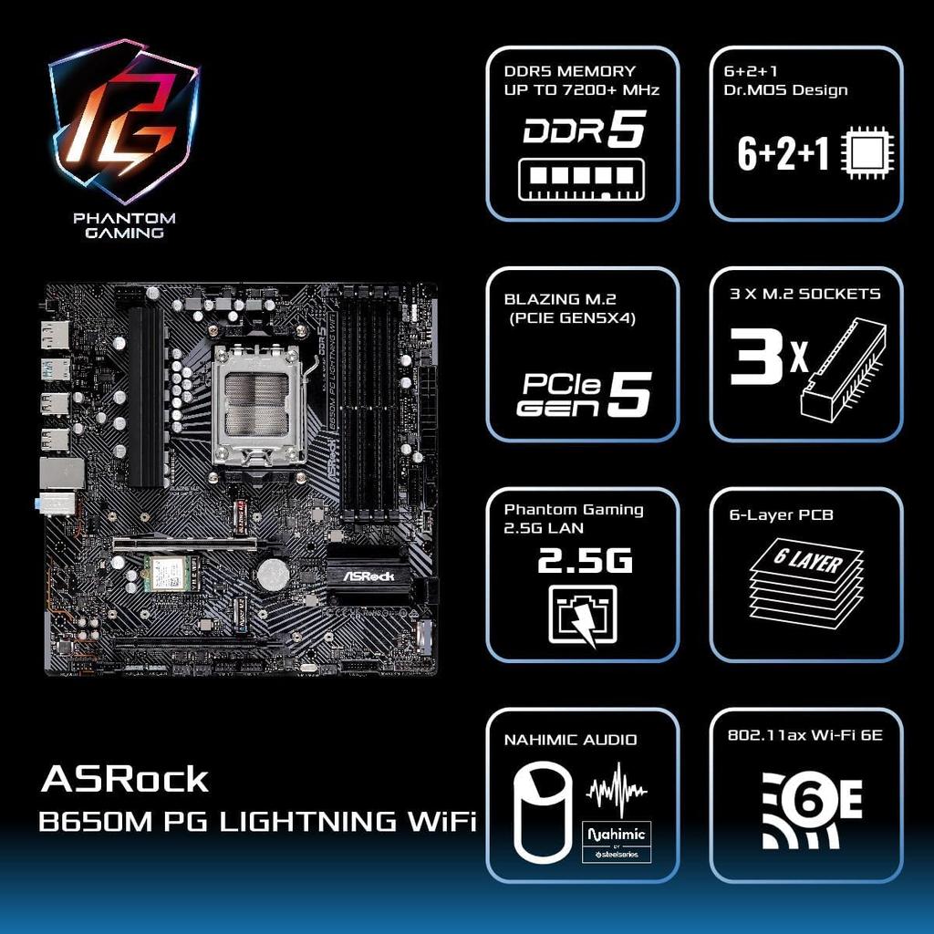 ASRock B650M PG Lightning WiFi 6E AMD Ryzen 9000/8