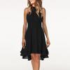 Женское сплошное цветное сексуальное платье трапециевидной формы без рукавов с круглым вырезом и висячим вырезом