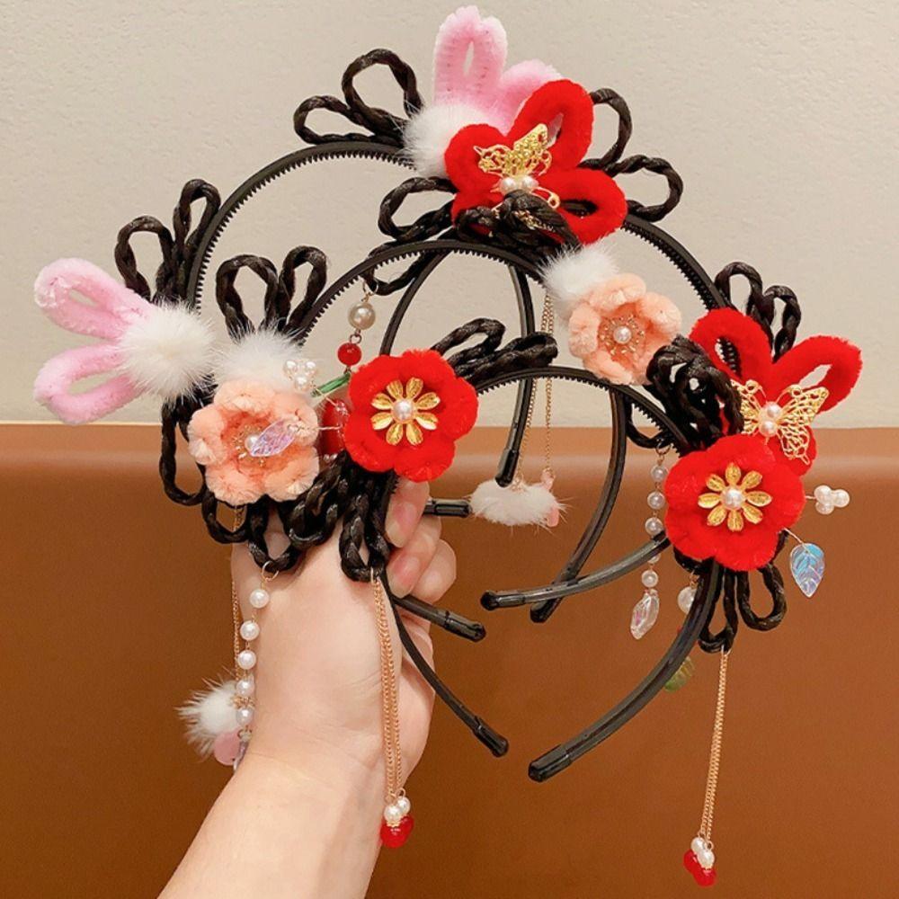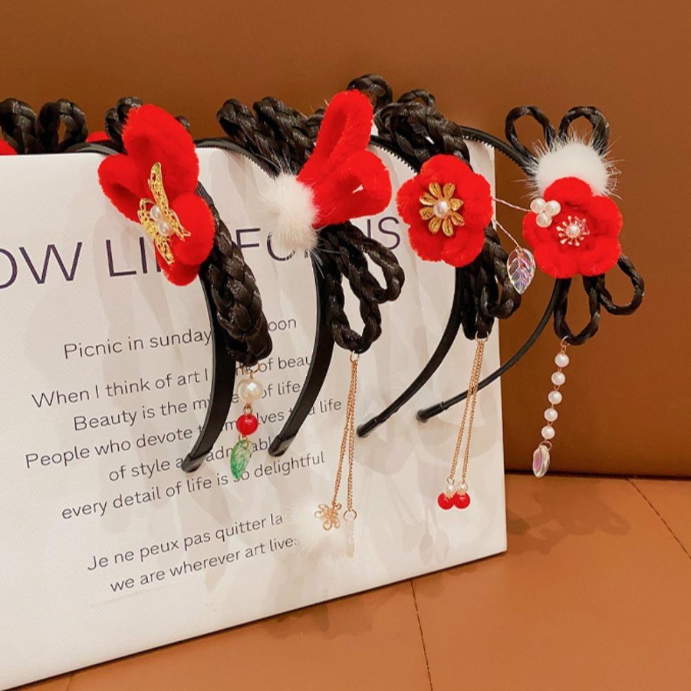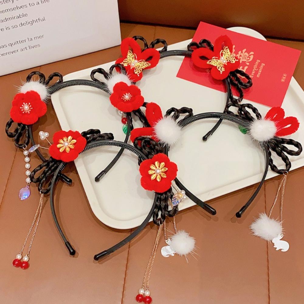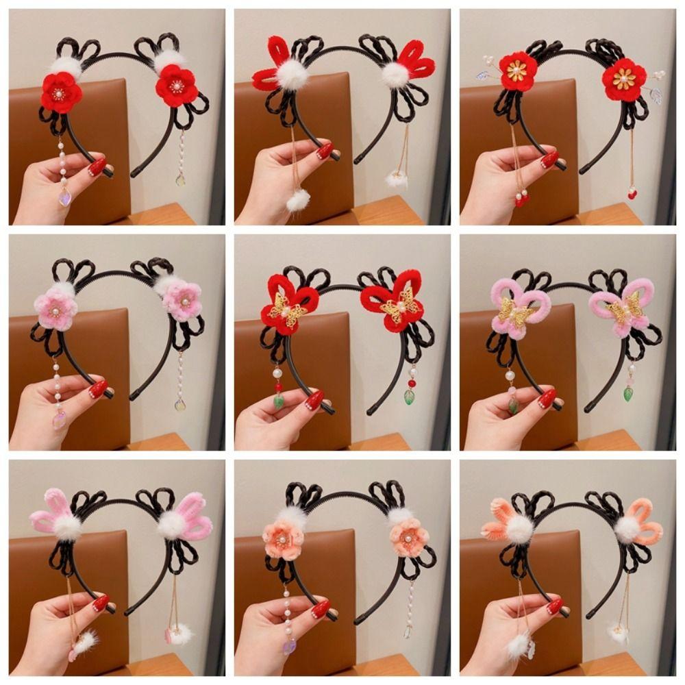 Антикварный обруч для волос в стиле ханьфу, китайский новогодний головной убор, аксессуары для волос, повязка на голову с цветочной кисточкой