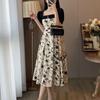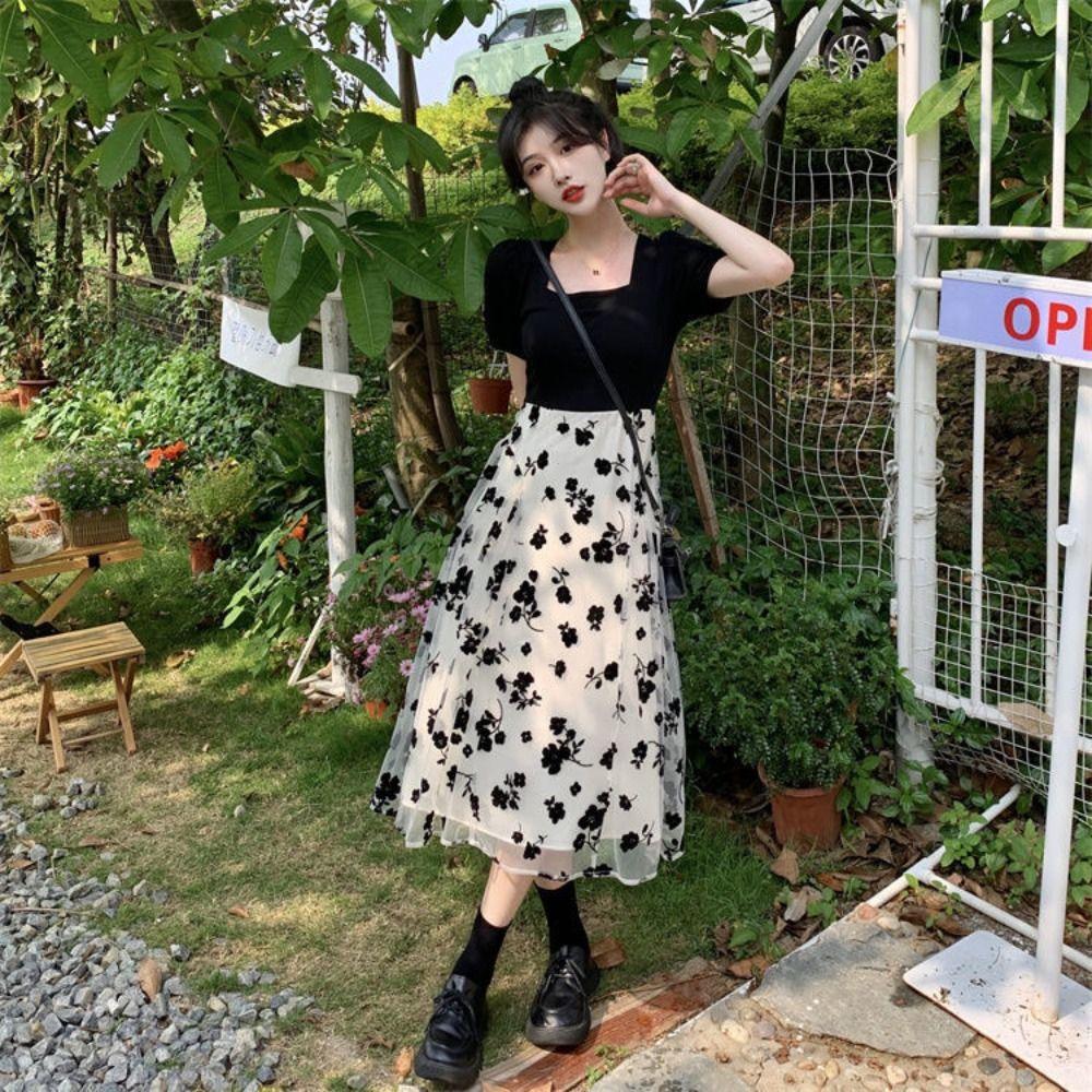 Длинное платье с квадратным вырезом и цветочным узором, пэчворк, платье с короткими рукавами, элегантная юбка А-силуэта, вечернее платье