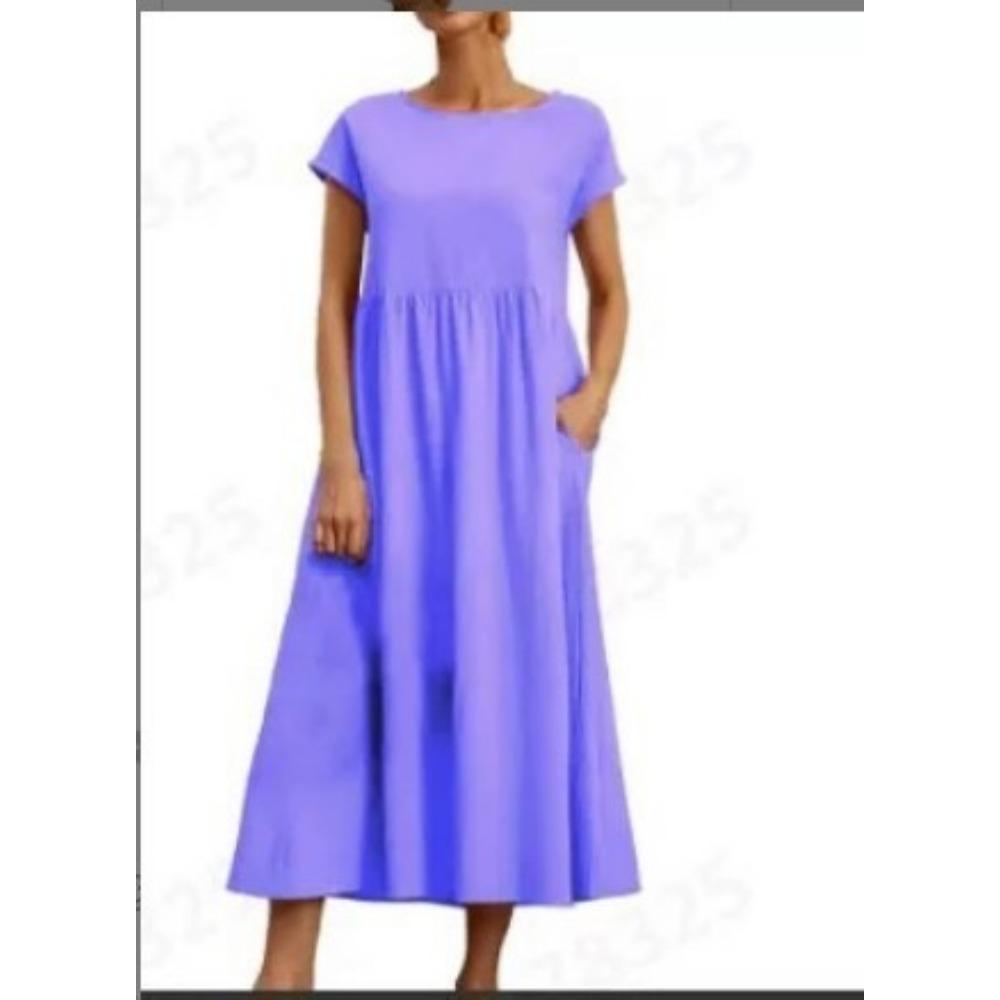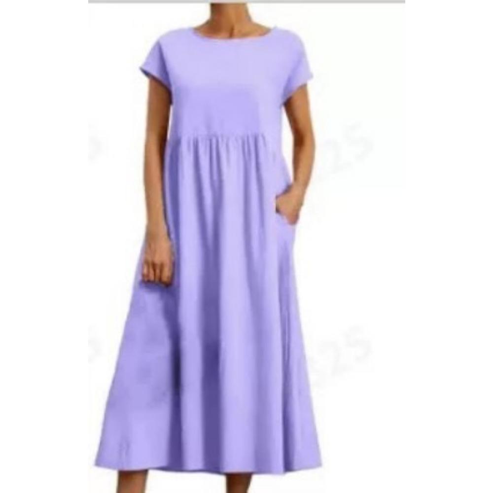 Женское винтажное однотонное платье, летнее элегантное платье с круглым вырезом и коротким рукавом из хлопка и льна, женское повседневное свободное длинное платье-сарафан размера S-5XL