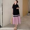 DIMANAF 2025 Летнее платье больших размеров для женщин Повседневное винтажное плиссированное длинное платье с коротким рукавом Свободное базовое платье
