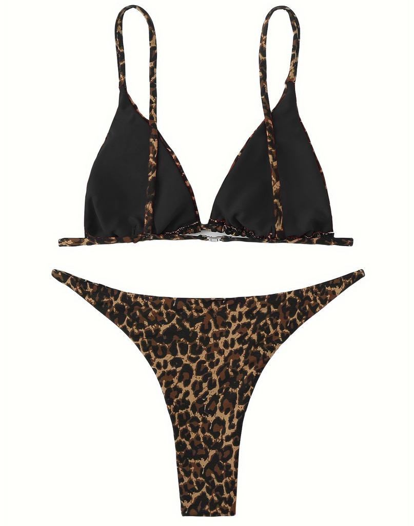 Женский купальник с леопардовым принтом Раздельный купальник Бикини Комплект пляжной одежды Купальные костюмы