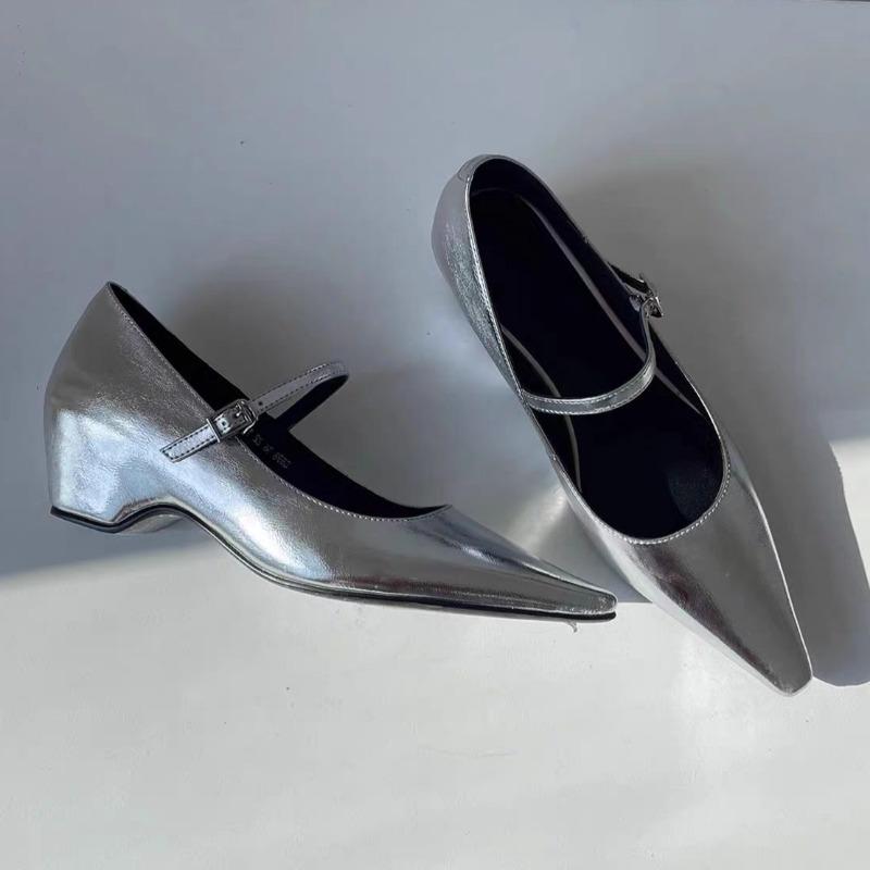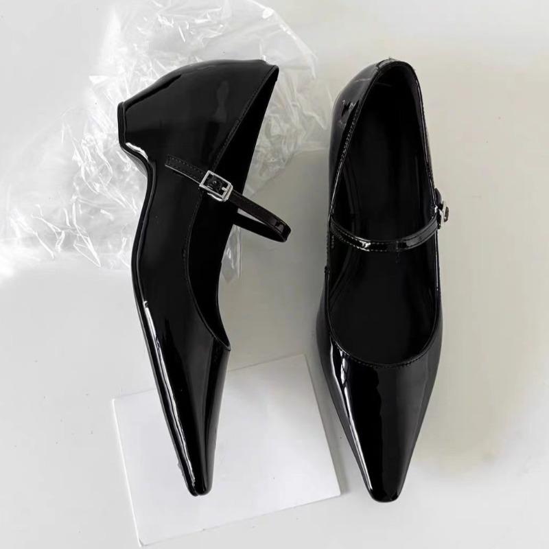 Новые туфли на грубом каблуке, женские, с острым носком, с неглубоким горлом, металлической пряжкой, линия А с противоскользящей подошвой, износостойкие туфли на низком каблуке