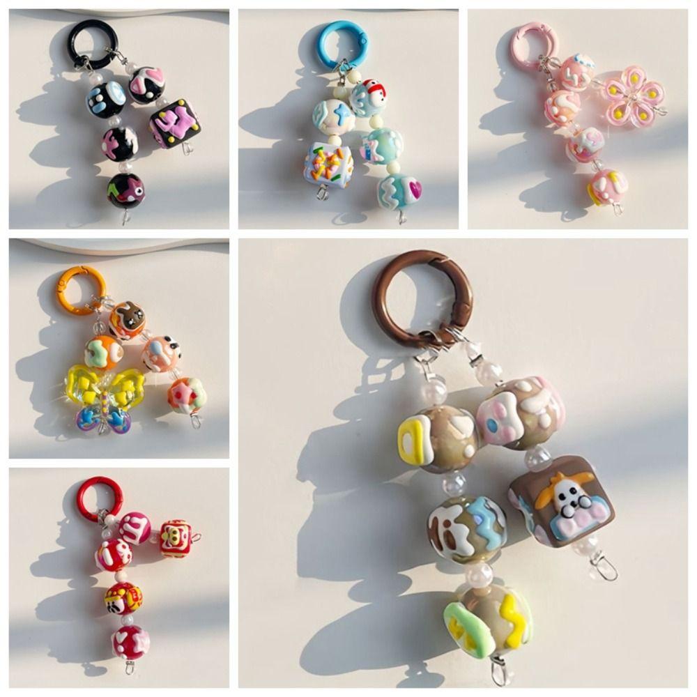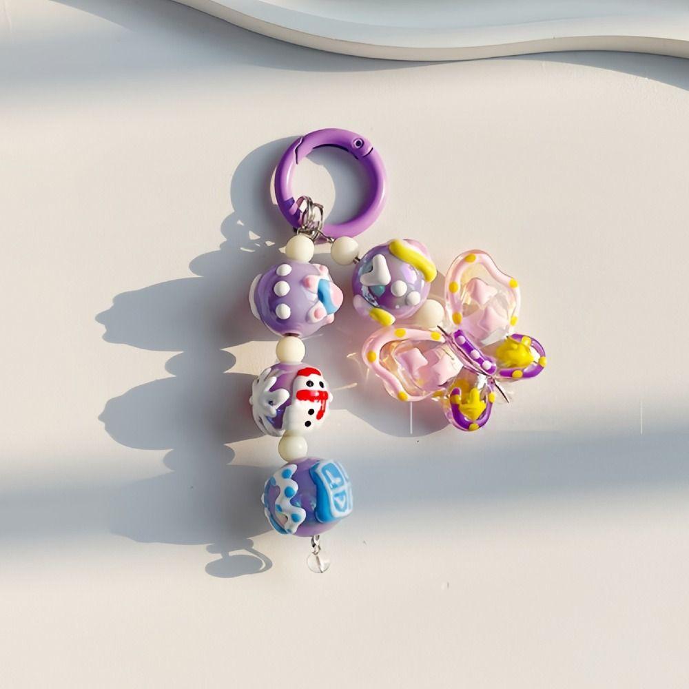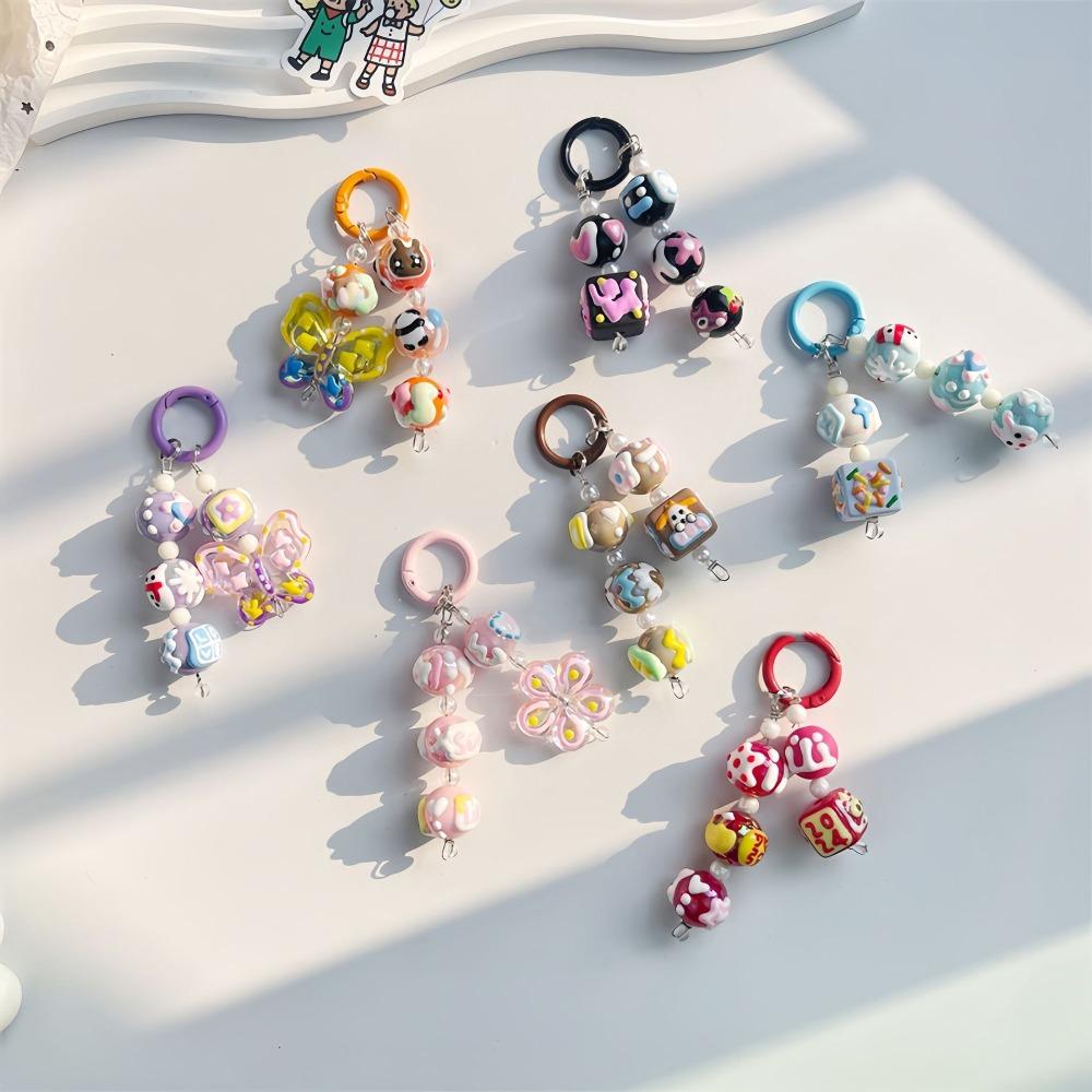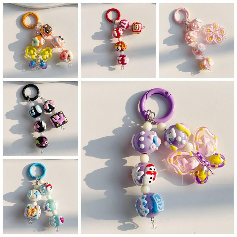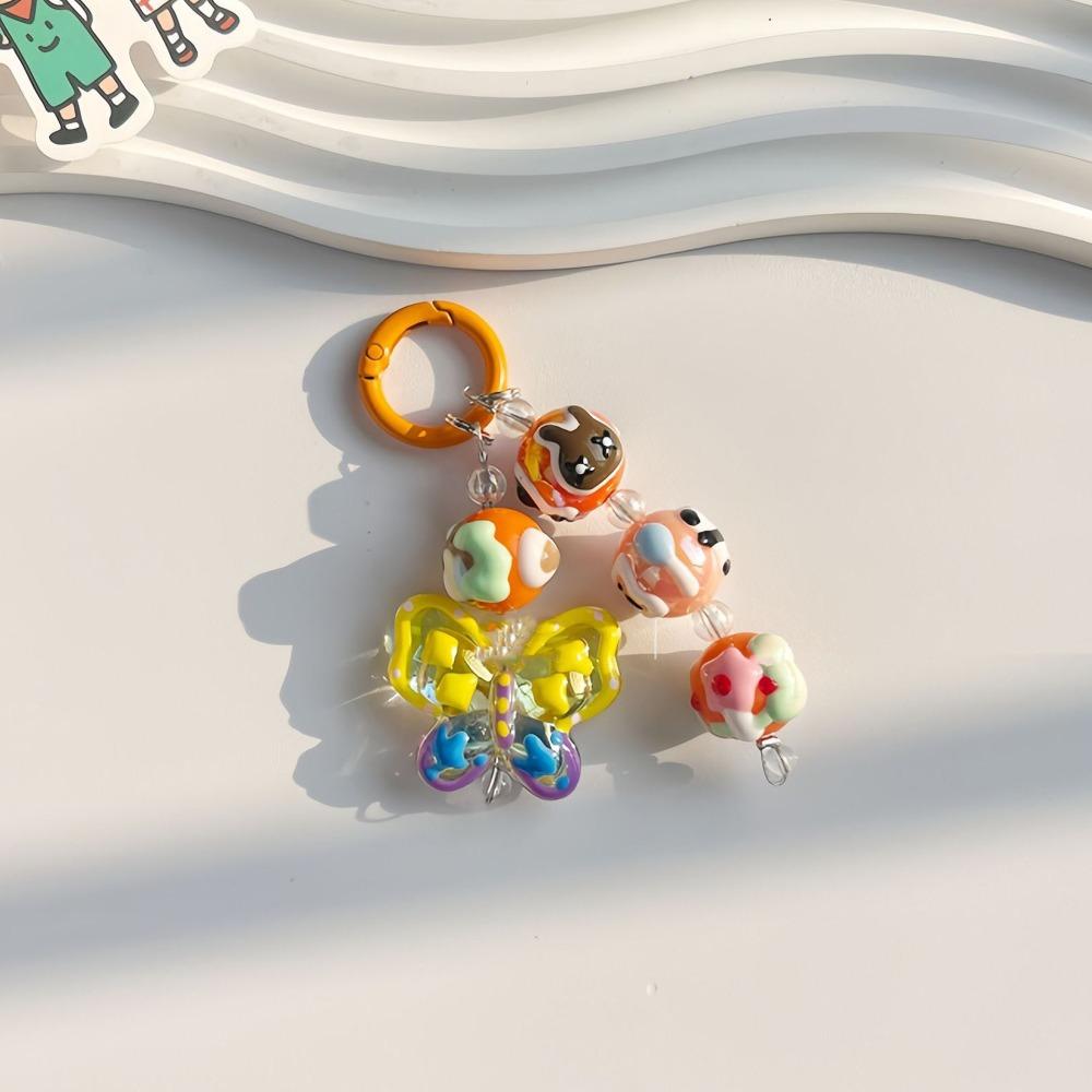 Beaded Pendant Hand-painted Beads Bag Pendant Sweet Butterfly Keyrings Backpack Decoration