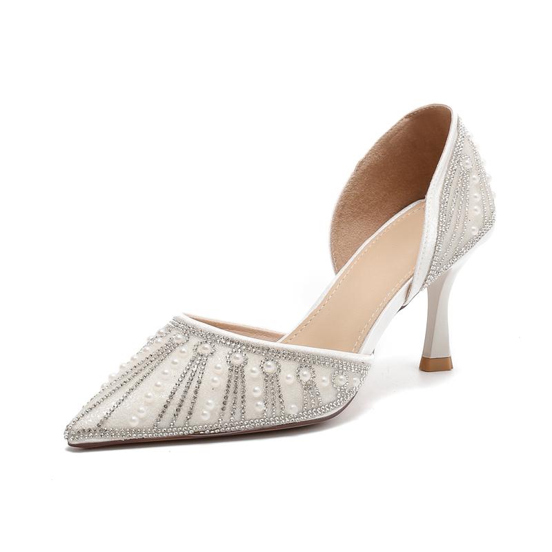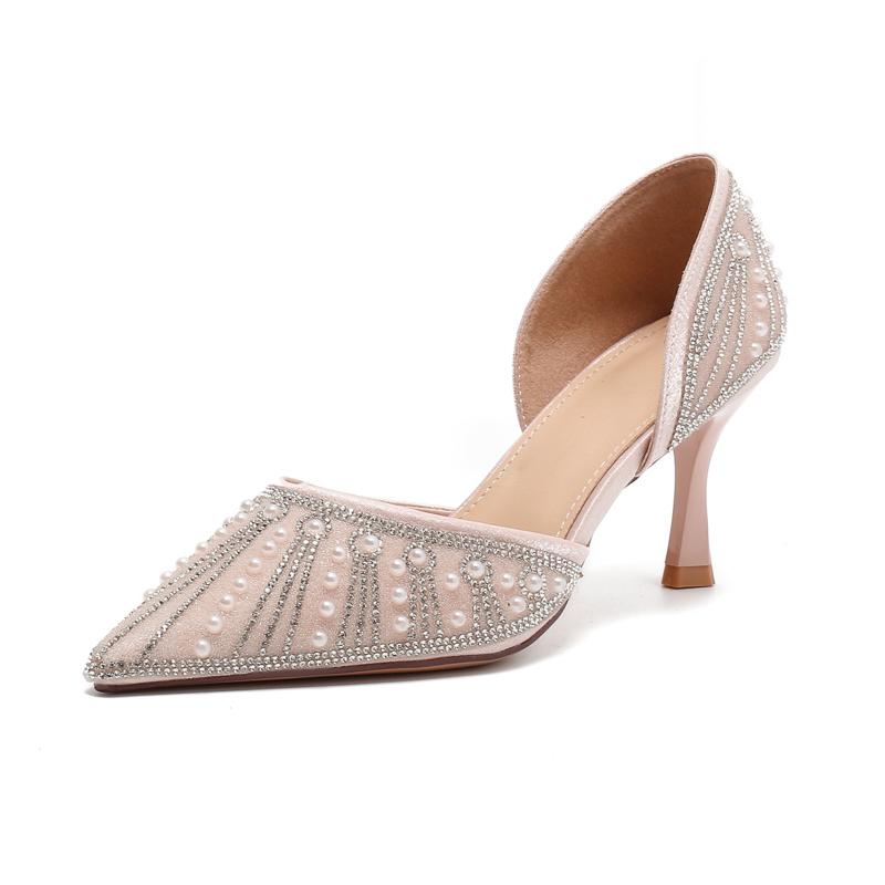 Женские туфли-лодочки со стразами, острым носком, неглубокие босоножки на каблуке 7 см, элегантные женские туфли