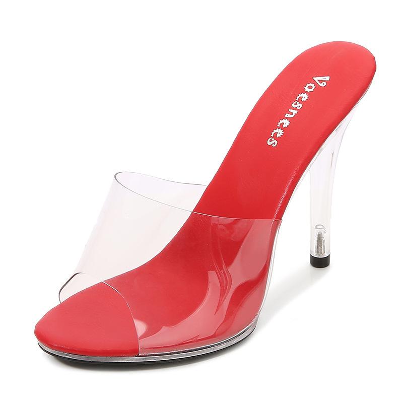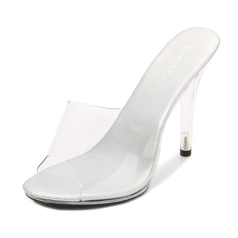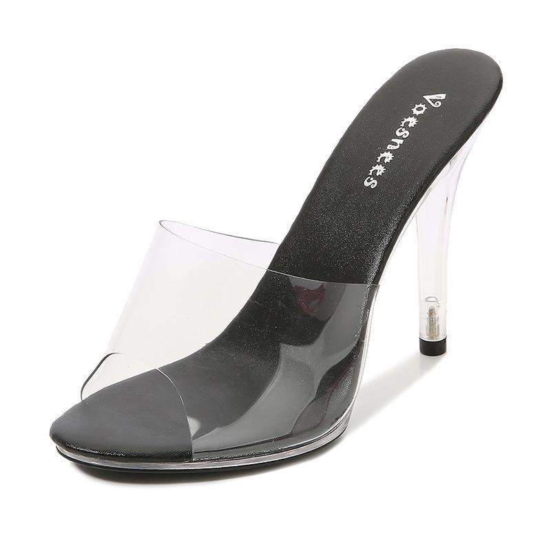Сексуальные тапочки женские ПВХ прозрачные сандалии 11 см высокие каблуки вечерние ночные клубные мюли обувь большого размера