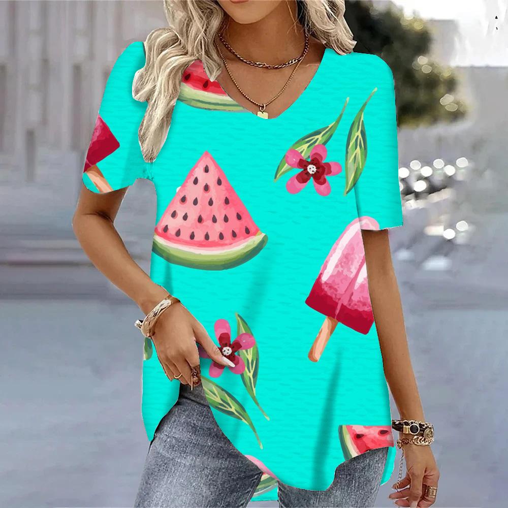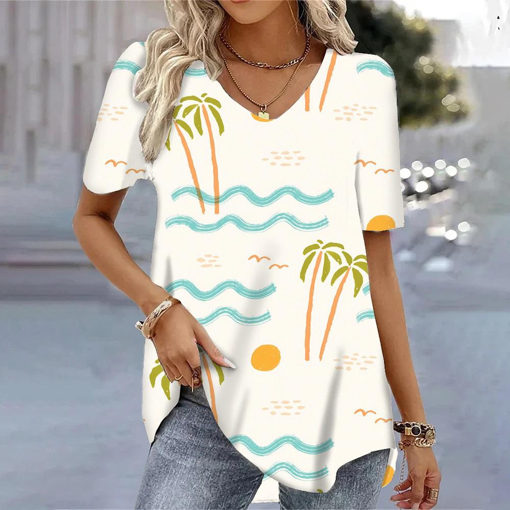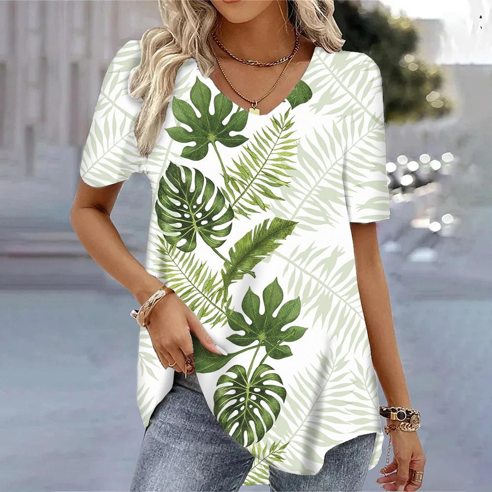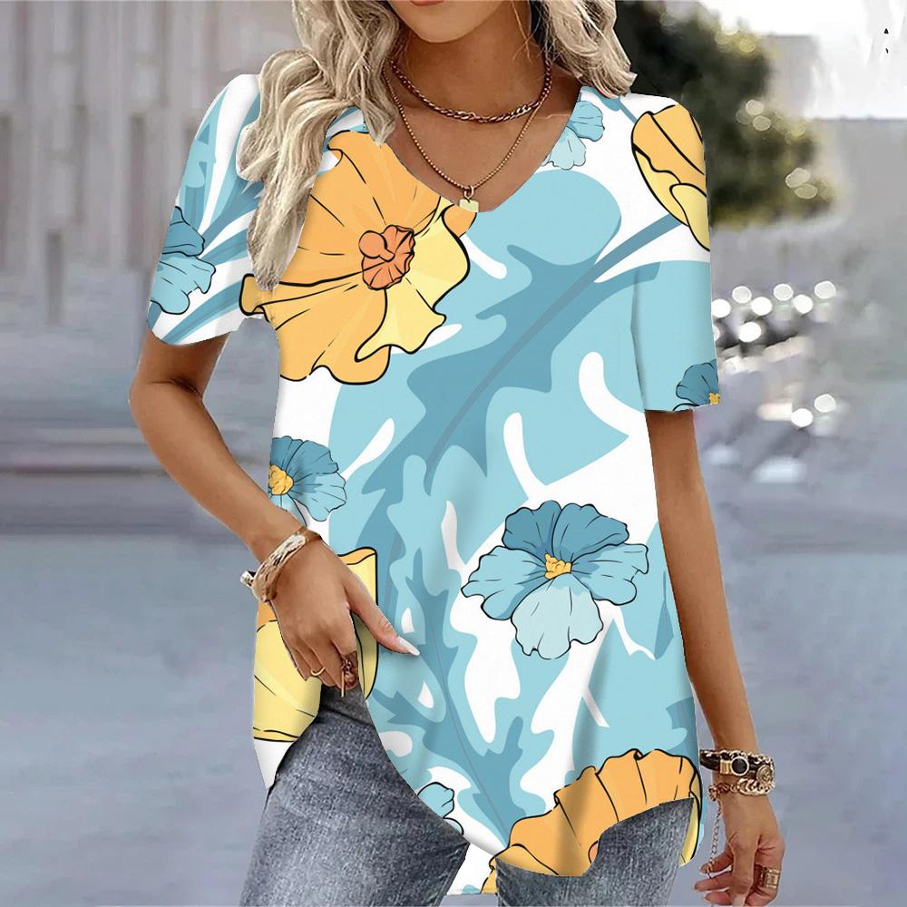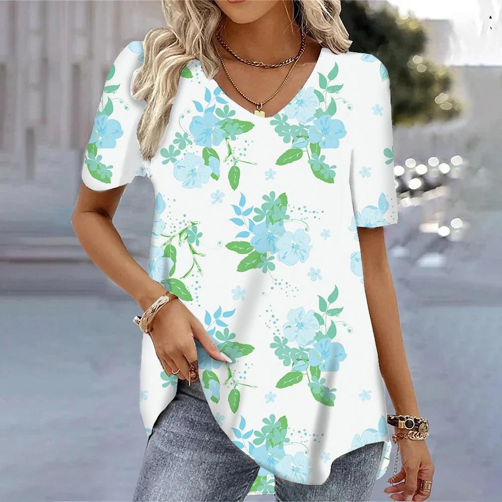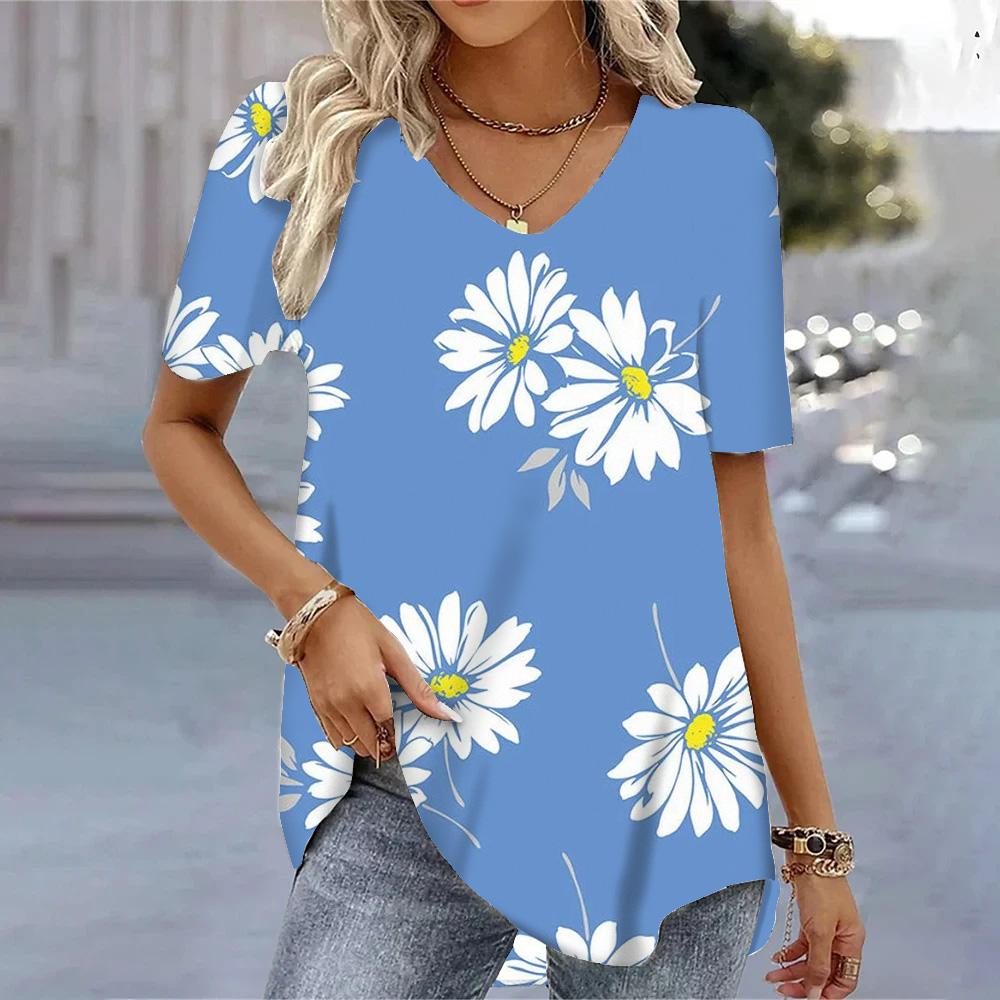 Футболка для женщин Одежда с цветочным принтом Летние топы с коротким рукавом в стиле Харадзюку Футболки с круглым вырезом Женские повседневные футболки Пуловеры