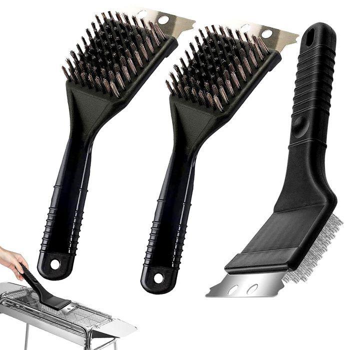 Brosse de barbecue - Inox - 3 pièces - Grattoir dur - Antirouille - Ergonomique
