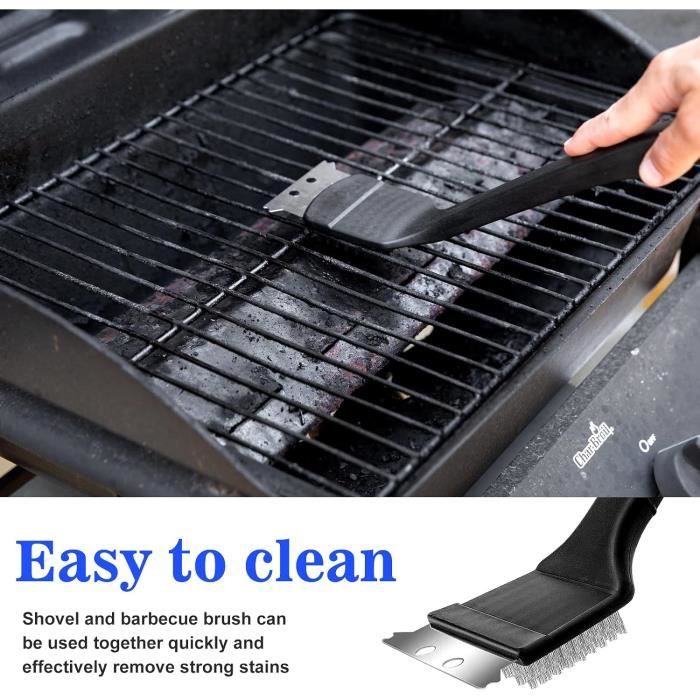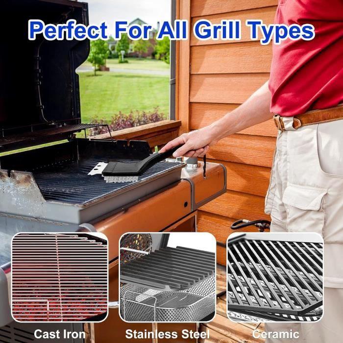 Outil de nettoyage pour barbecue - Brosse 3 en 1 - Acier inoxydable - Antirouille - Durable