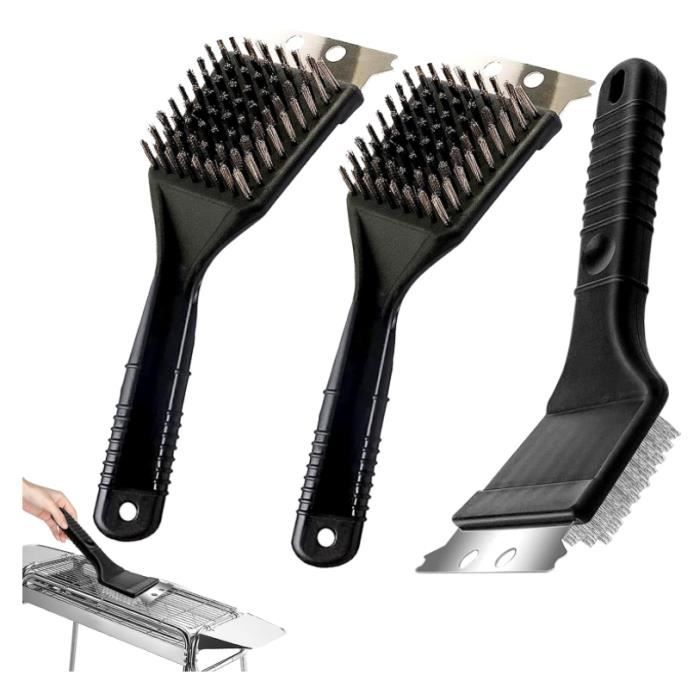 Brosse de barbecue - 3 Pièces - Acier inoxydable - Antirouille - 3 en 1 - Outil de nettoyage avec grattoir
