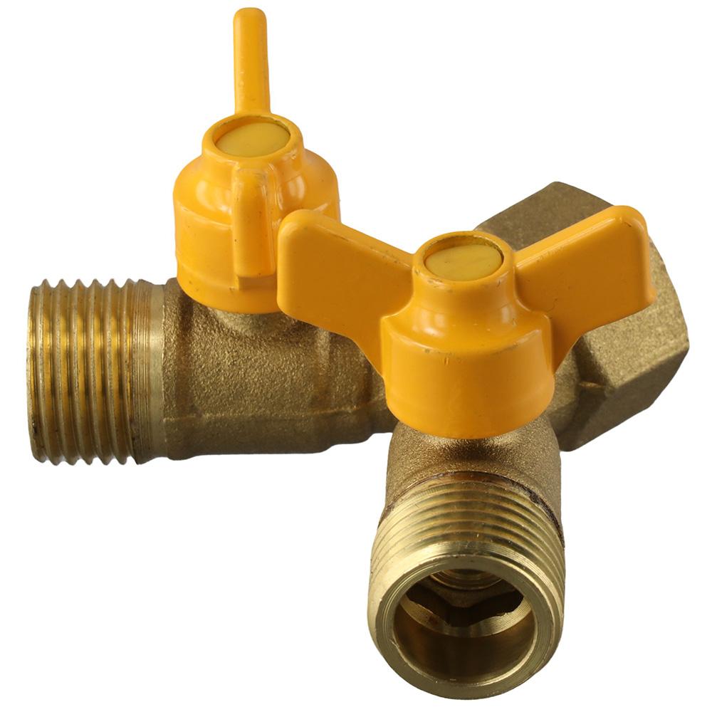 Brass Connectors 2 Way Water Splitter Strength Shut Off Valve Home