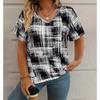 Летняя винтажная женская футболка, повседневная клетчатая принтованная одежда, топ с V-образным вырезом и коротким рукавом, модные уличные футболки