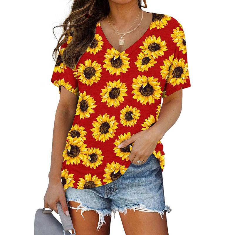 Новая футболка с изображением подсолнуха, 3D-принт в горошек, короткий рукав, V-образный вырез, женские топы, уличная одежда, футболки больших размеров в стиле Харадзюку, одежда 2000 года