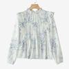 ZANZEA Женская повседневная блузка с воротником-стойкой и длинным рукавом с цветочным принтом