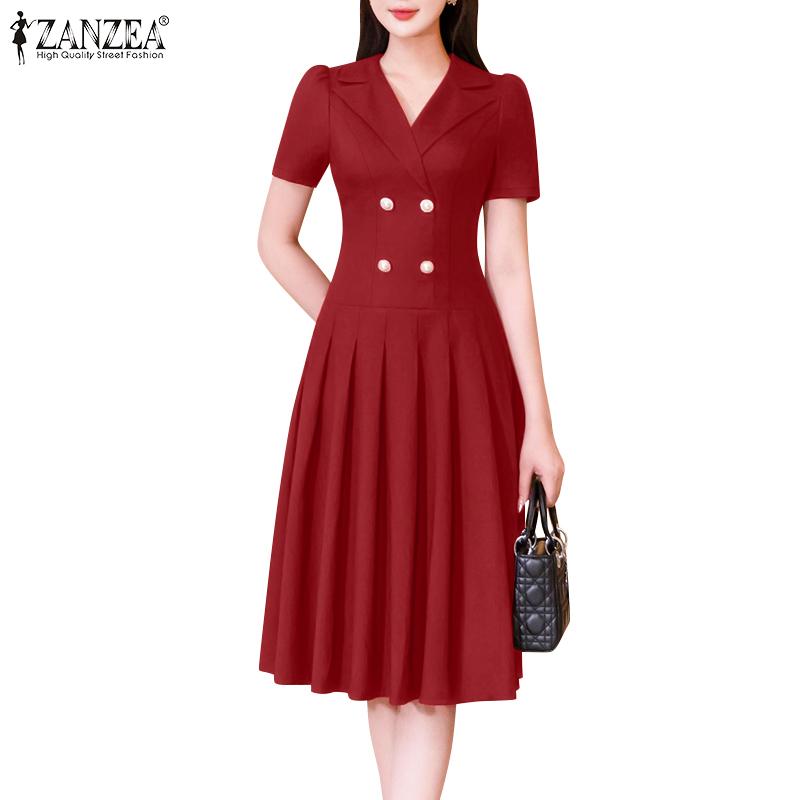 ZANZEA Женское повседневное свободное плиссированное платье с отложным воротником и короткими рукавами — купить товар онлайн с бесплатной доставкой по всему миру!