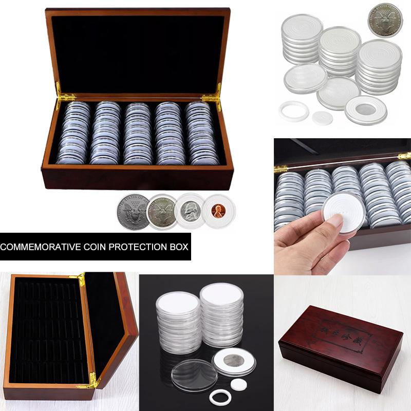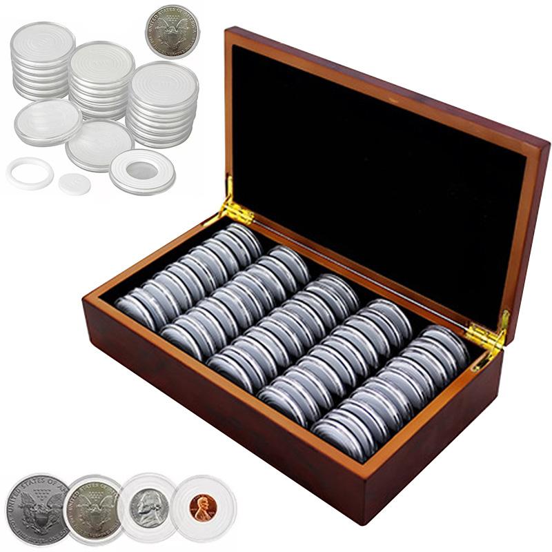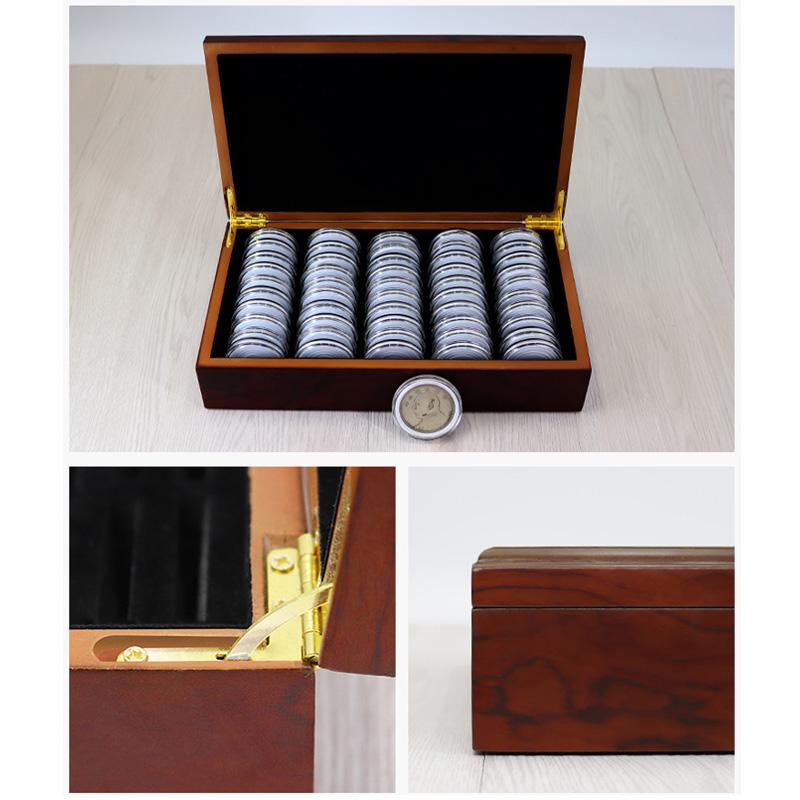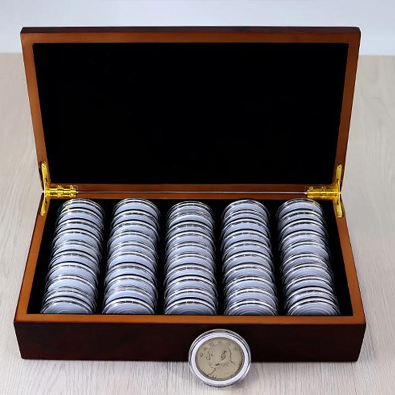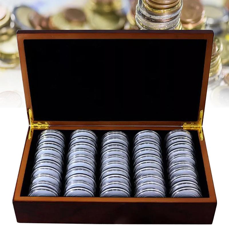 1 шт. держатели для дисплеев, капсулы для хранения монет 46 мм, 50 шт., деревянный ящик